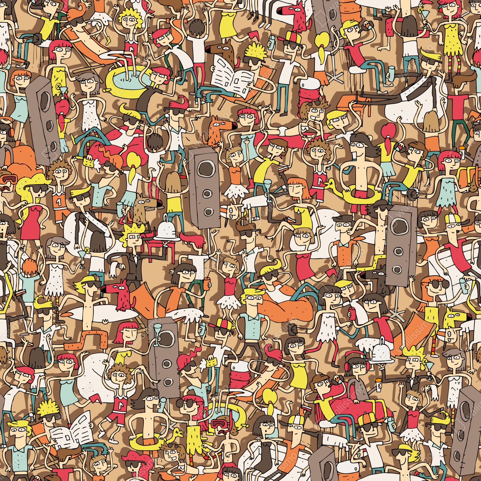 Fototapete verspieltes party-muster mit menschen
