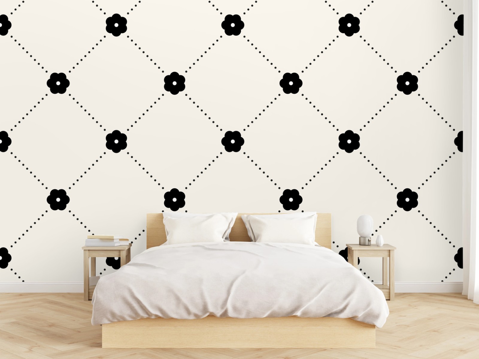 Fototapete Minimalistisches schwarzes blumen-rautenmuster
