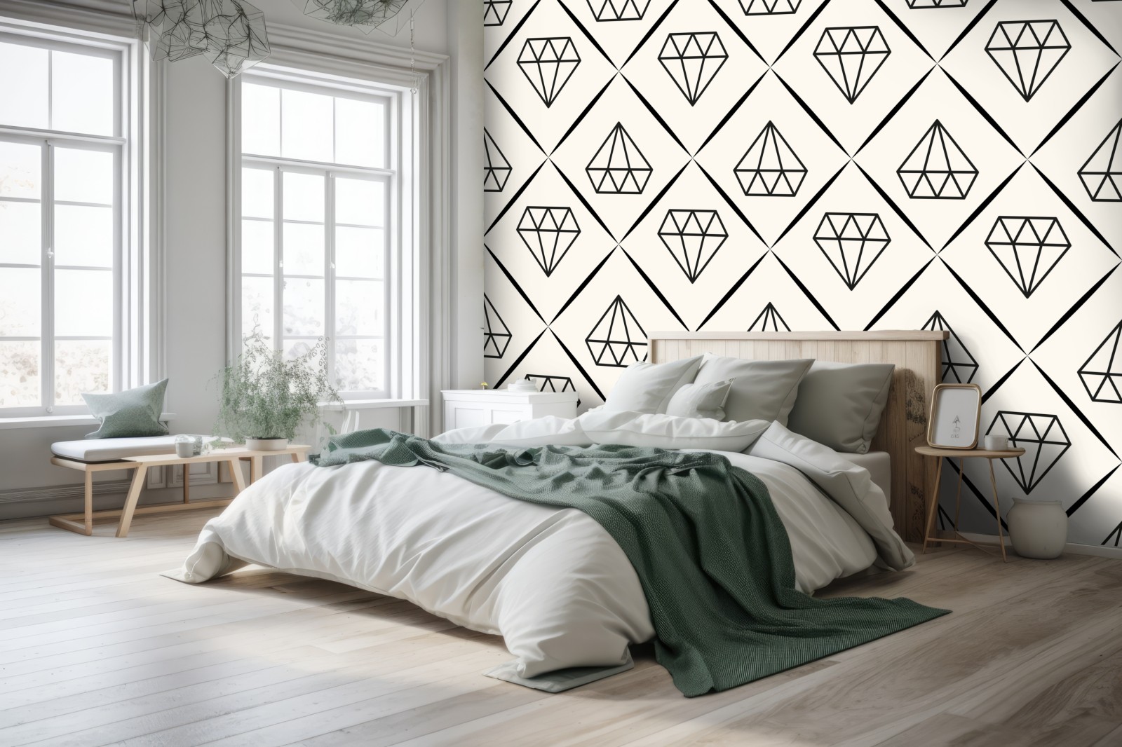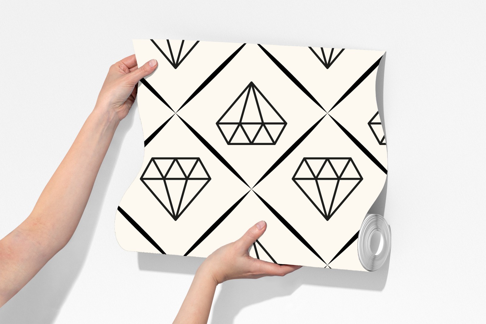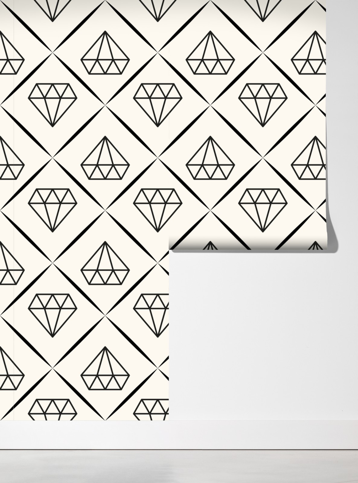 Ein minimalistisches, sich wiederholendes Diamantmuster in monochromen Tönen verleiht jedem Raum moderne Eleganz und subtile Struktur.