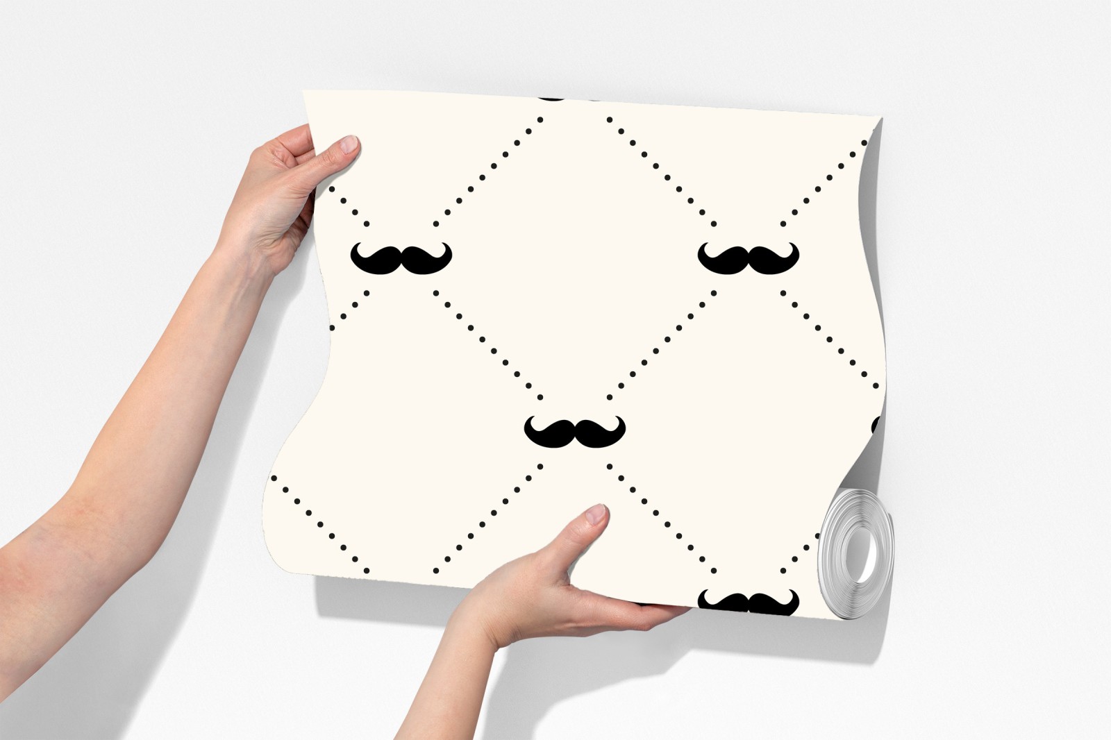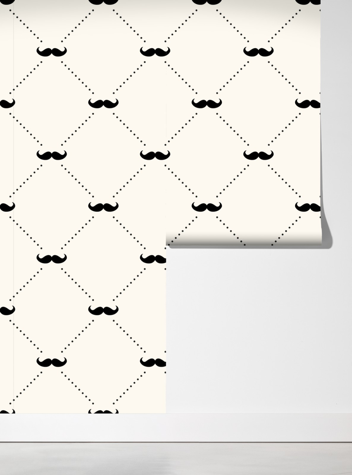 charaktervolles wiederholendes schnurrbartmuster mit gepunktetem rautengitter verleiht jedem kinderzimmer oder kreativenraum einen verspielten retro-charme.