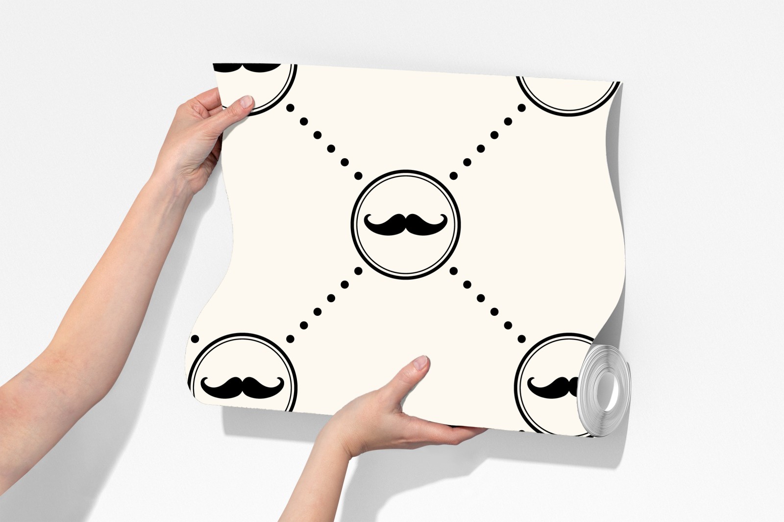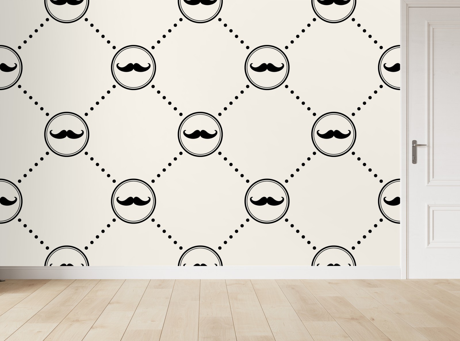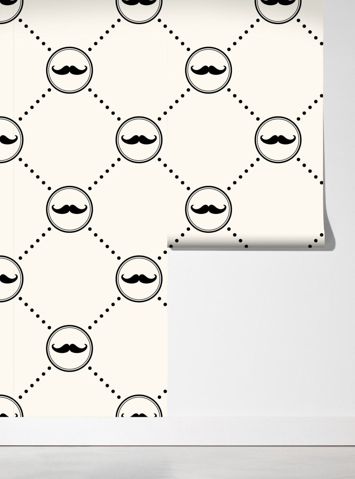 Verleihe Räumen verspielten Charme mit diesem minimalistischen Schnurrbartmuster in klassischem Schwarz und Beige, ideal für Kinderzimmer oder originelle Wandgestaltungen.