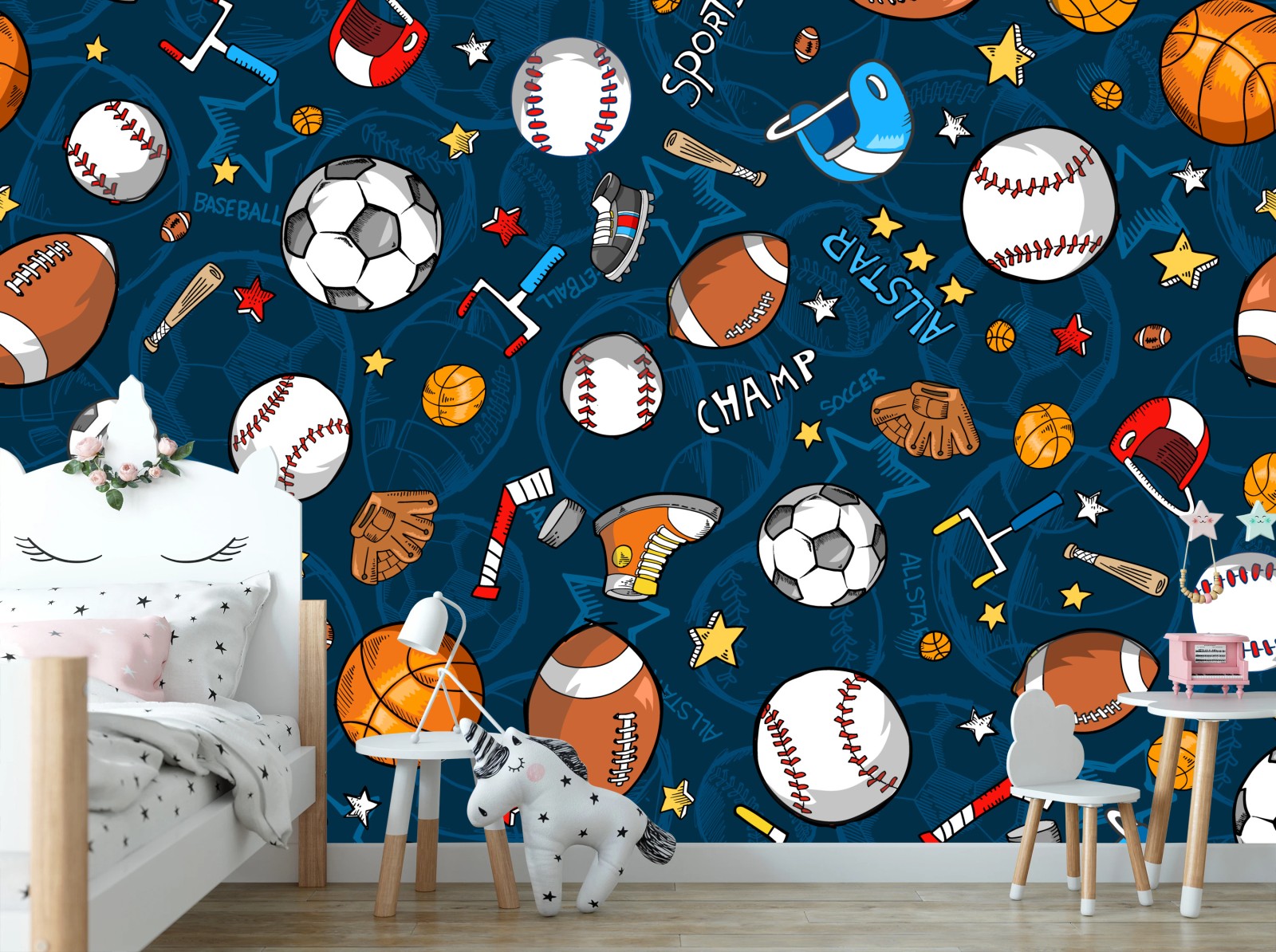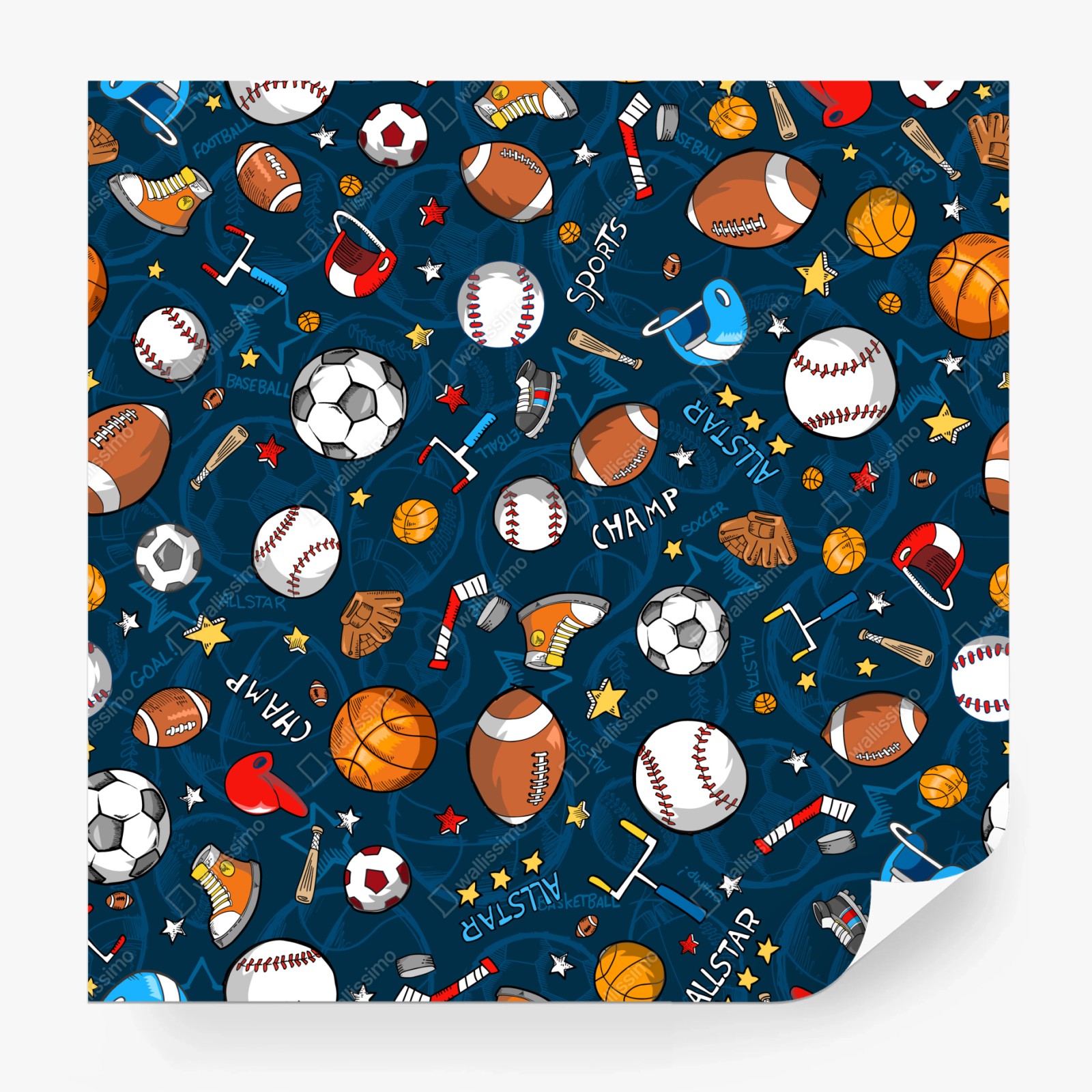 Fototapete Verspieltes sportmuster auf dunkelblauem hintergrund
