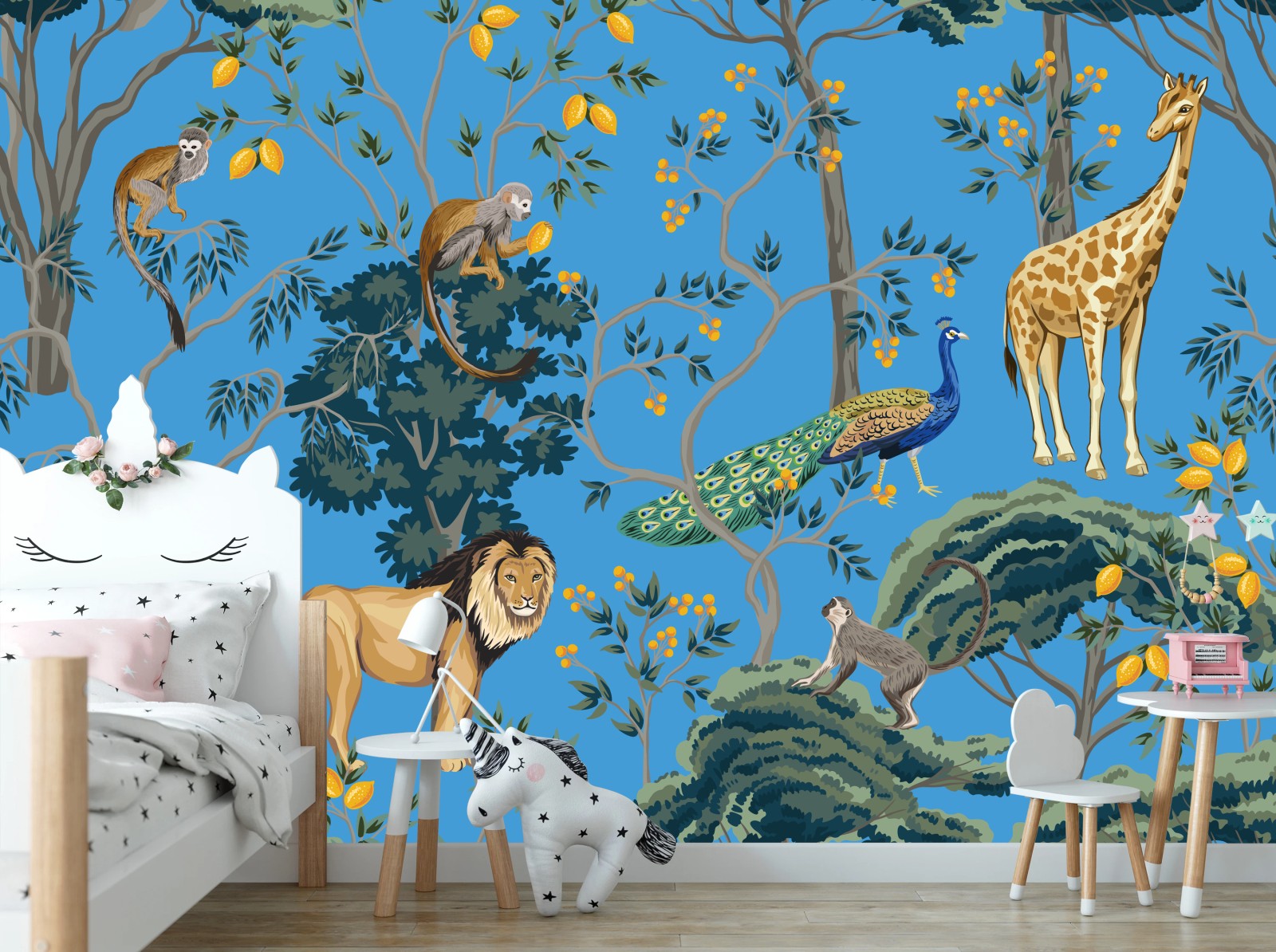 Fototapete Exotisches tiermuster auf blauem hintergrund