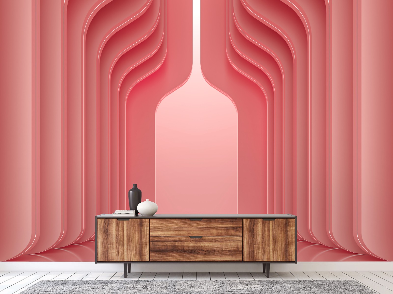 Fototapete Zeitgenössisches korallenrosa architekturmotiv