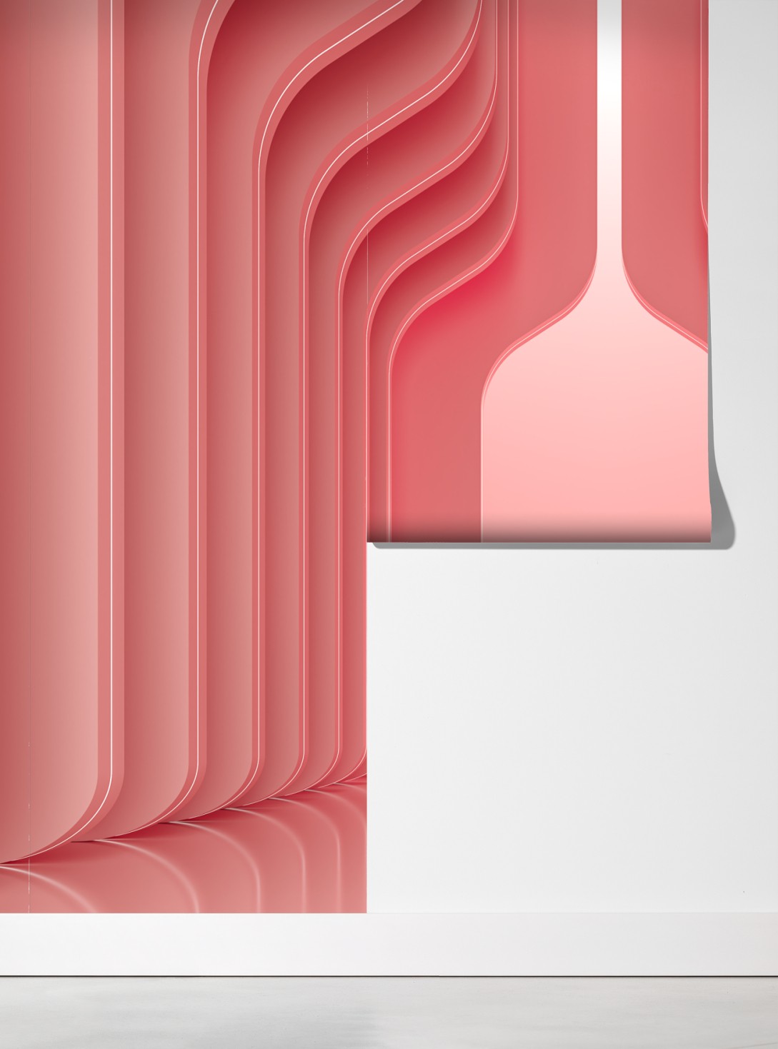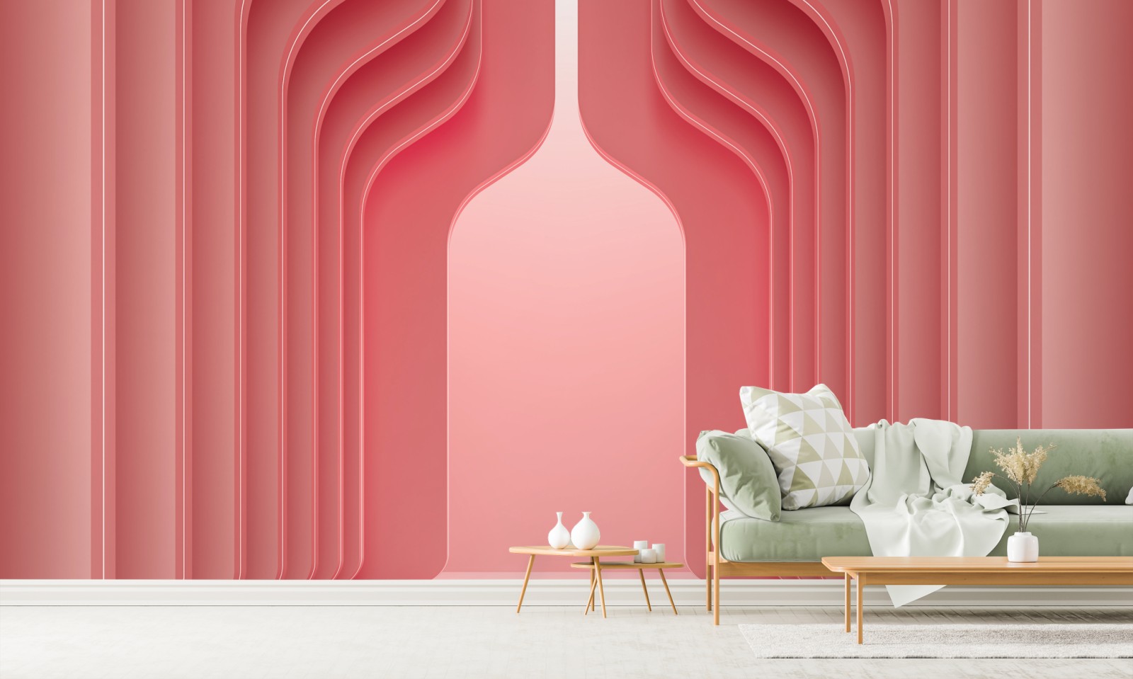 Elegante pastellkorallenbögen schaffen einen ruhigen modernen abstrakten Hintergrund, der zeitgenössische Innenräume aufwertet.