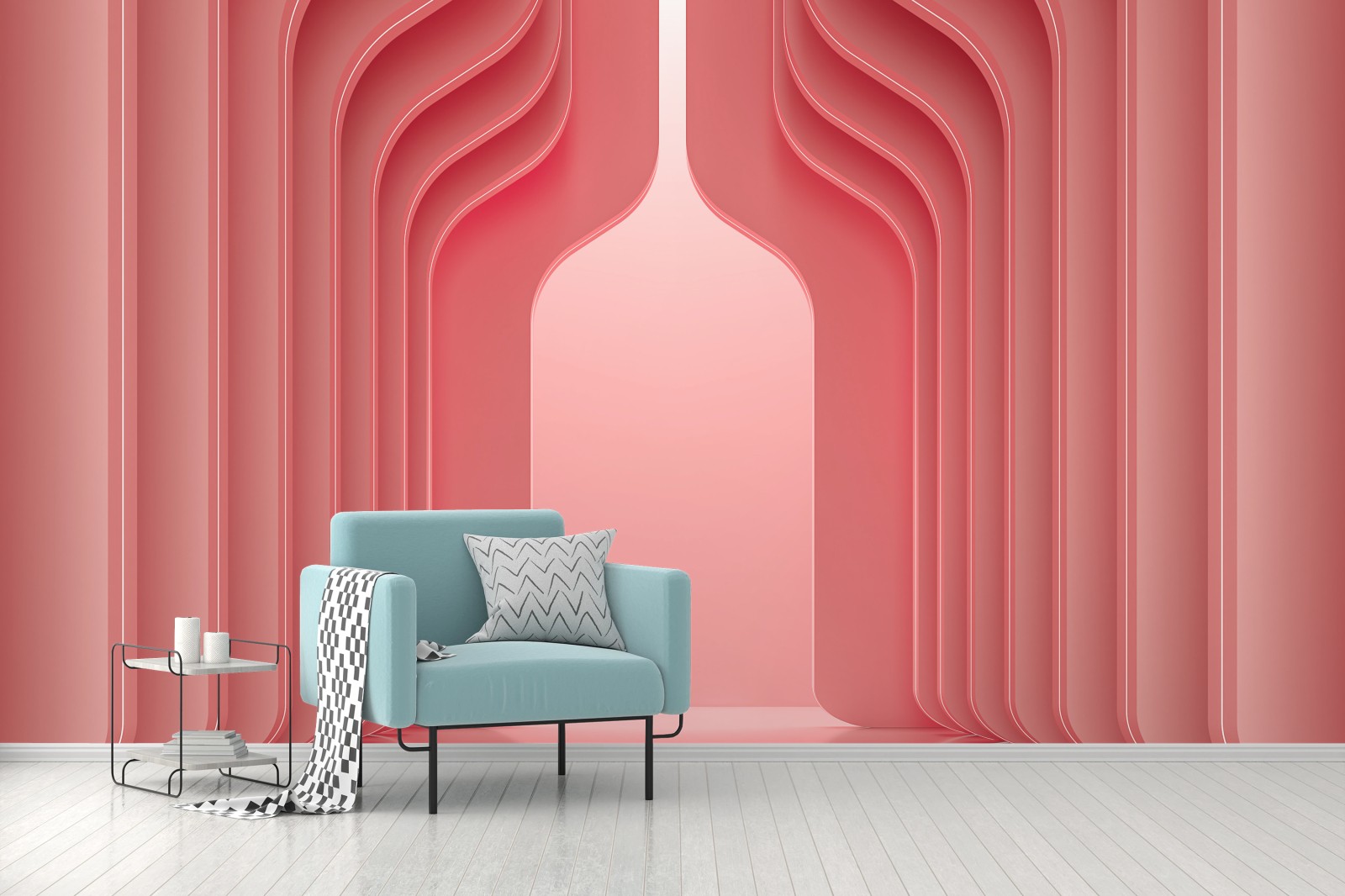 Fototapete Zeitgenössisches korallenrosa architekturmotiv
