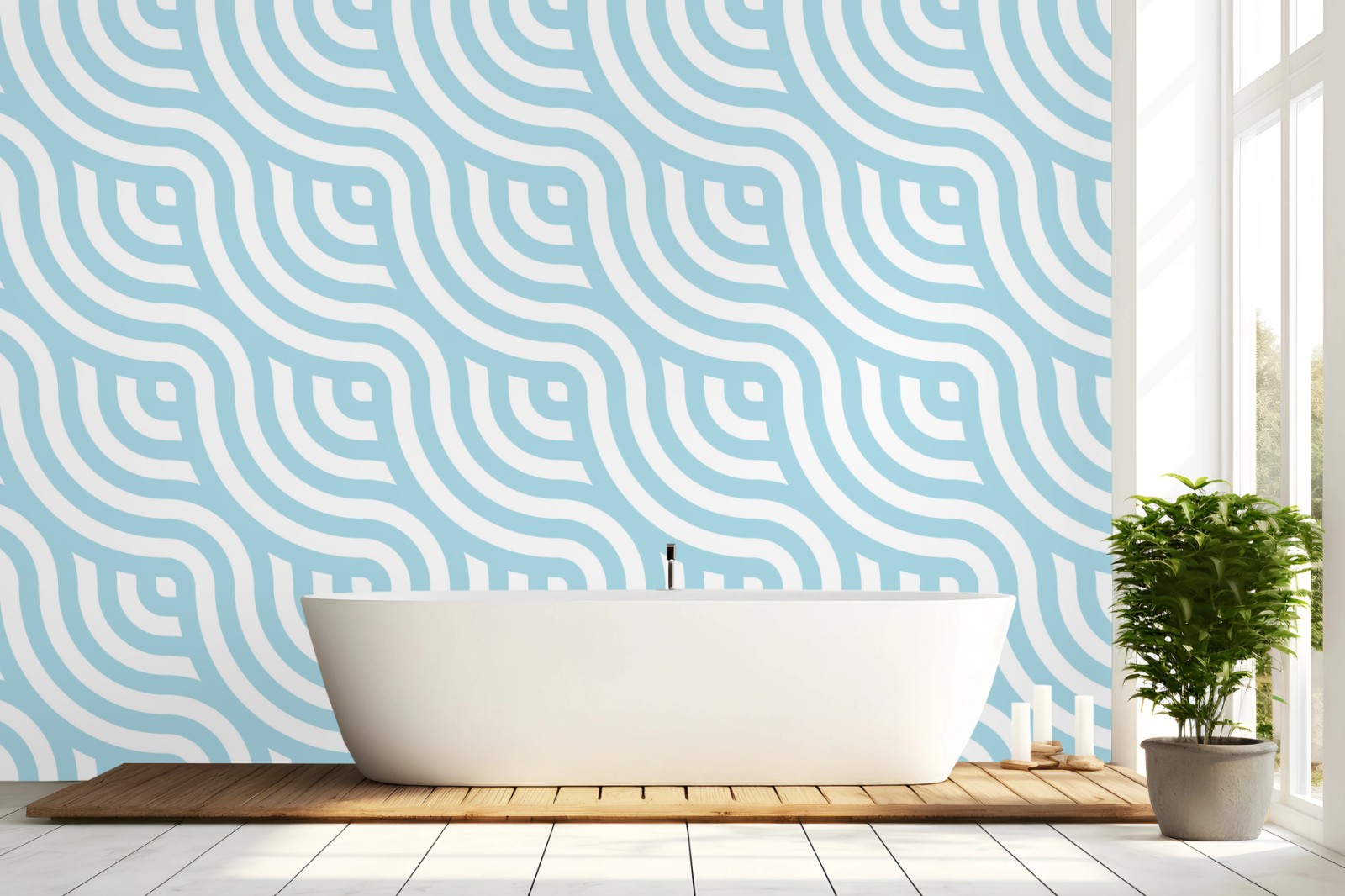 Fototapete Sanftes türkis geometrisches wellenmuster
