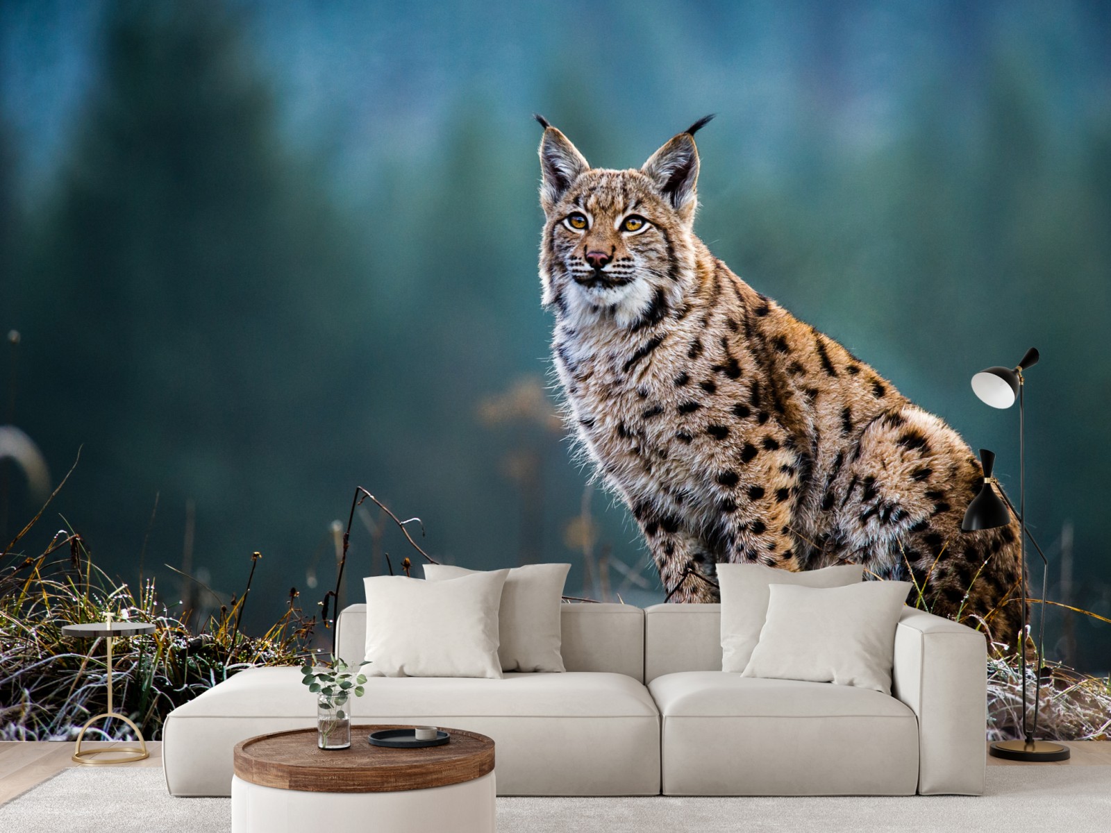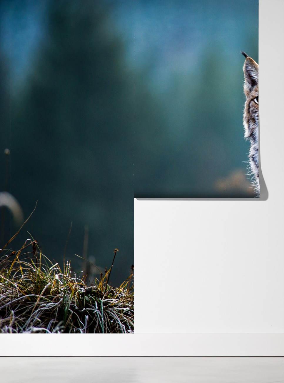 Atemberaubende Nahaufnahme eines Luchses in seinem natürlichen Umfeld, ideal um die wilde Schönheit des Waldes ins Zuhause zu bringen.