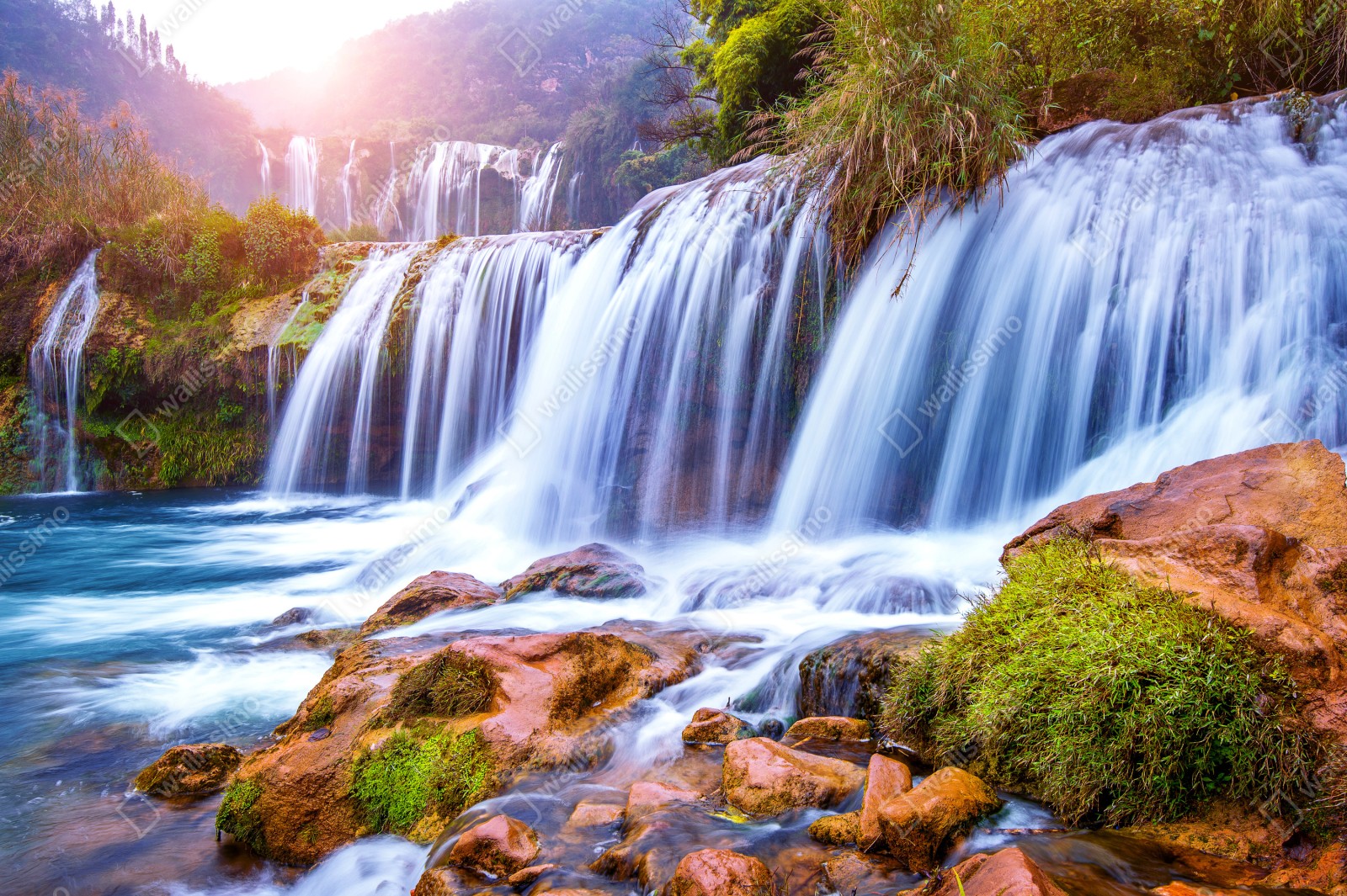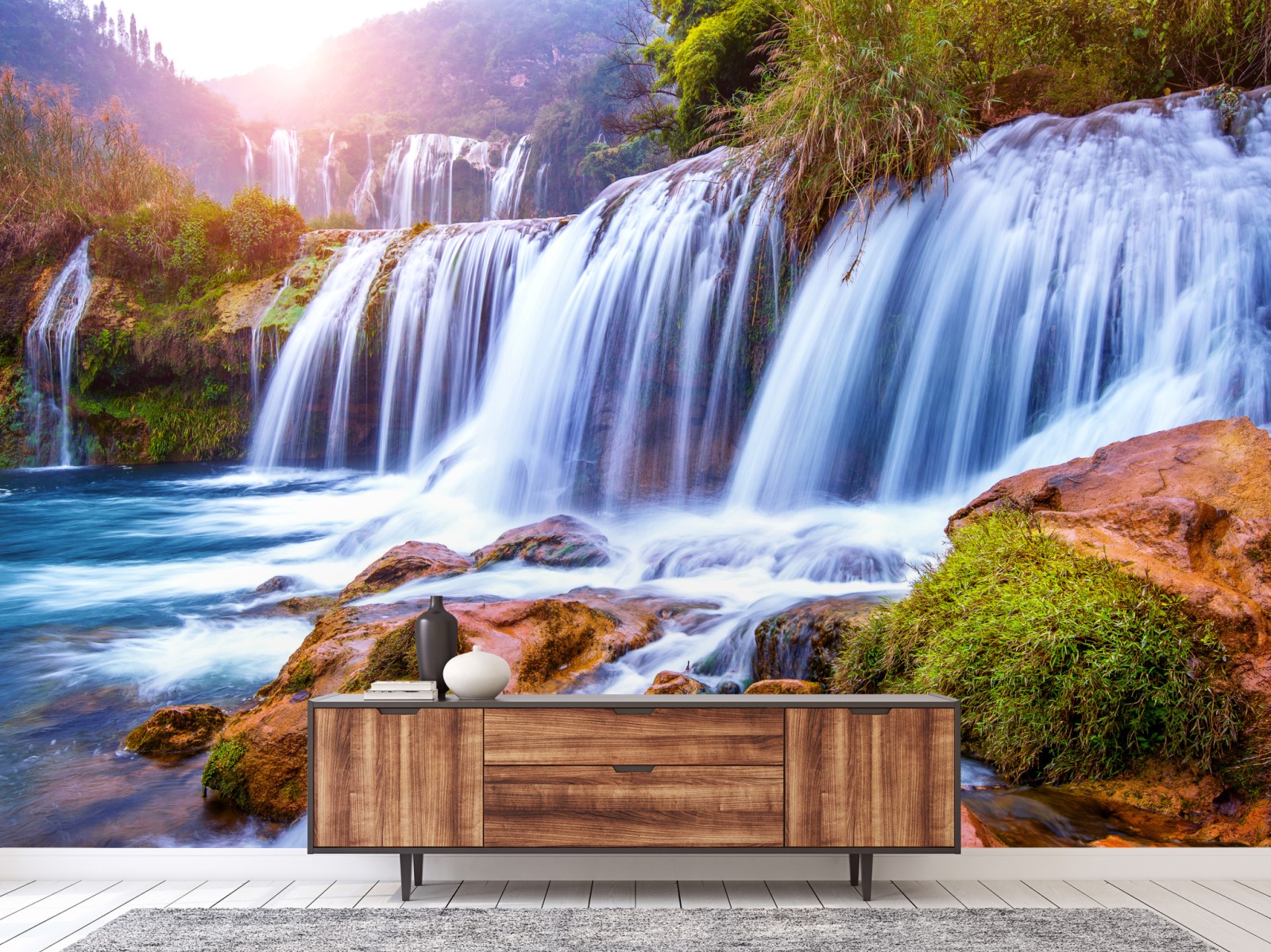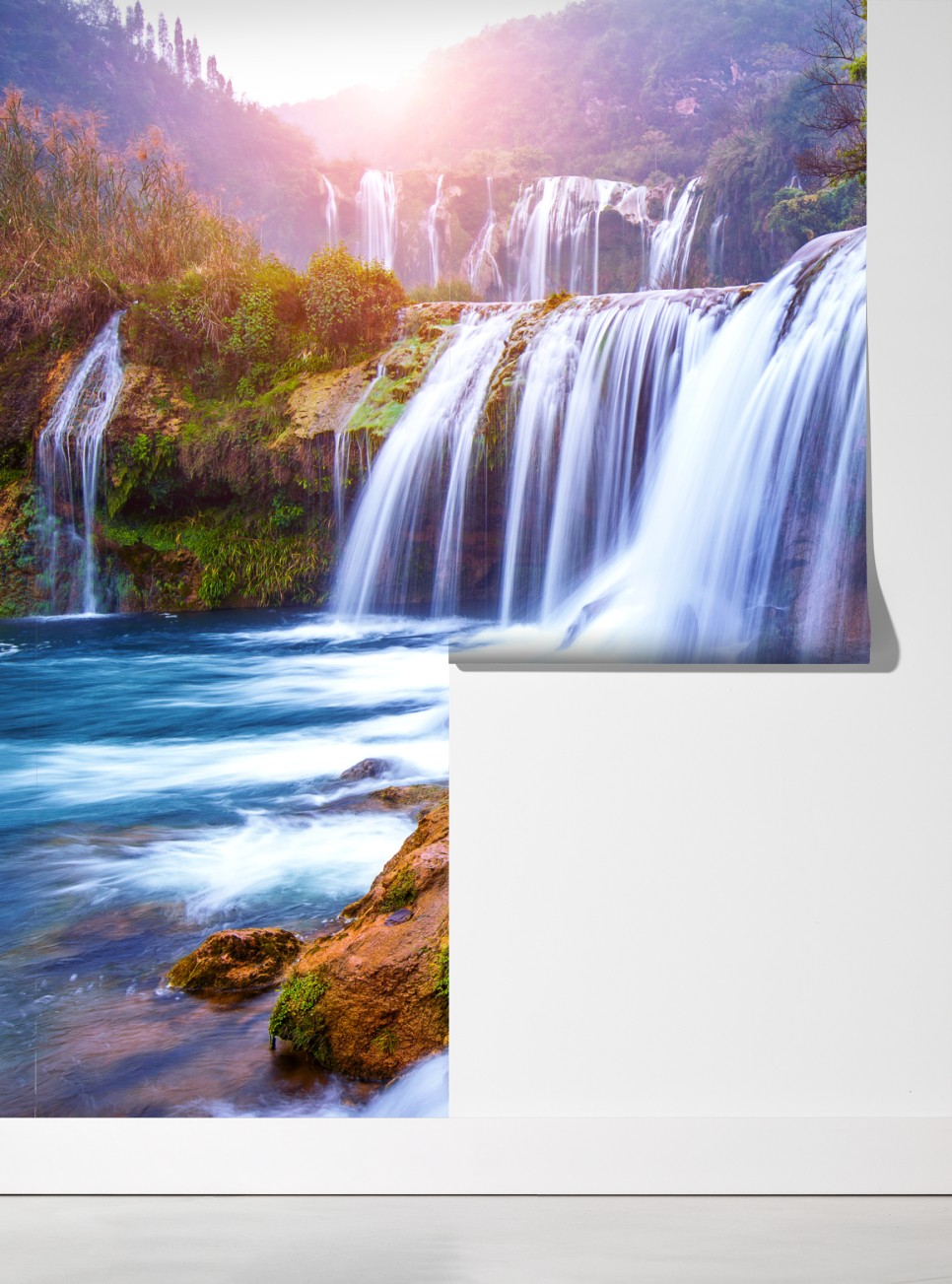 Bringen Sie die ruhige Schönheit des Jiulong-Wasserfalls in Ihr Zuhause mit diesem lebendigen Landschaftsbild, das jedem Raum natürliche Gelassenheit verleiht.