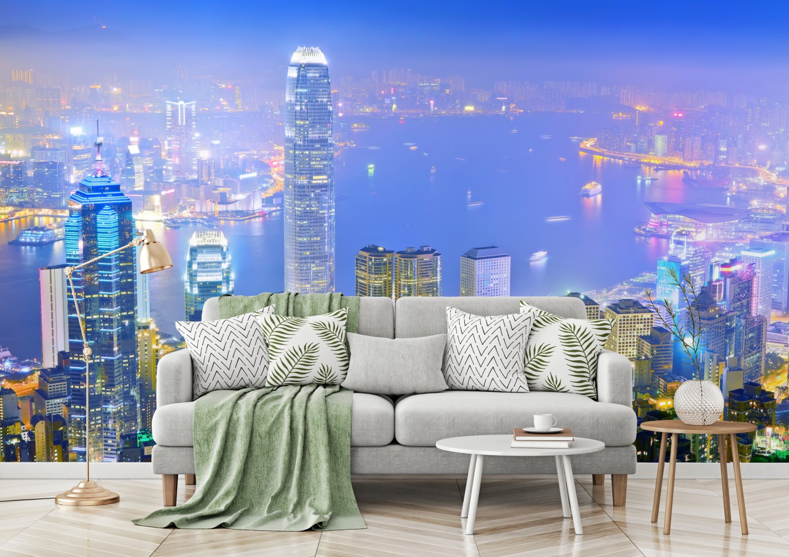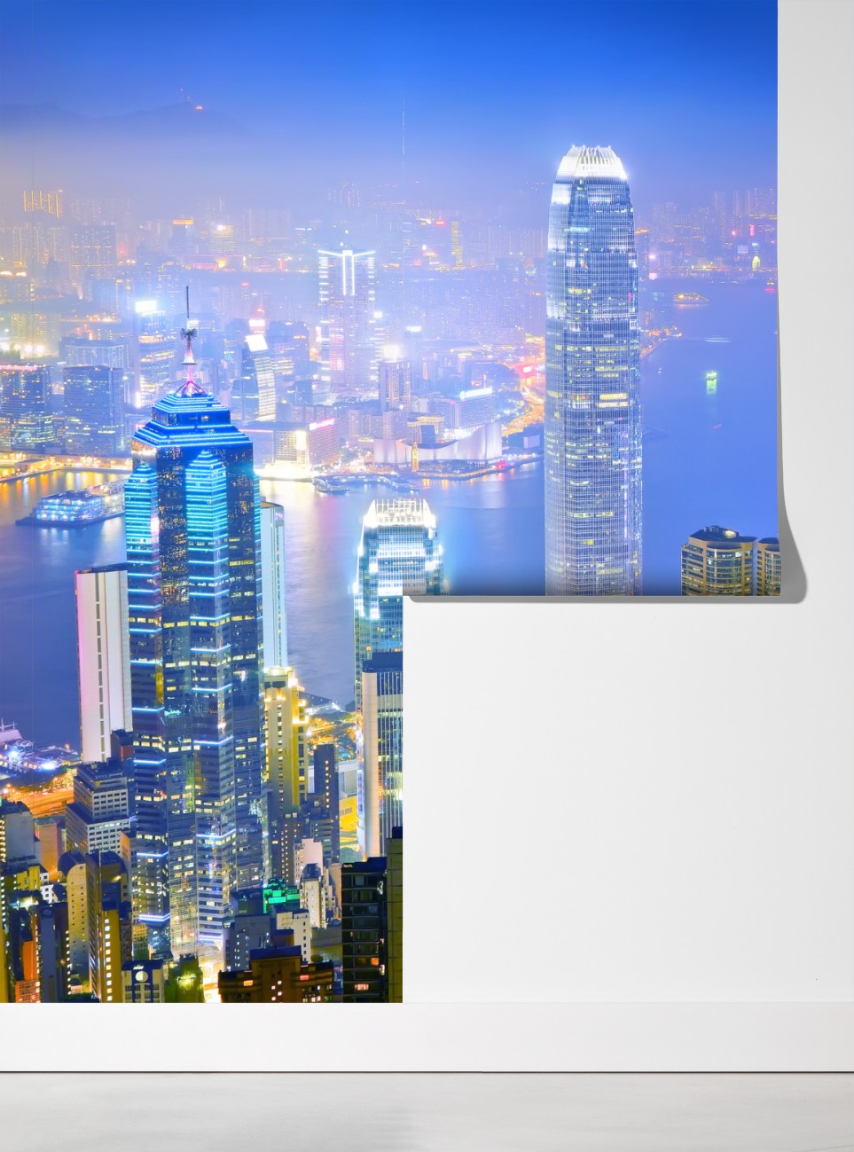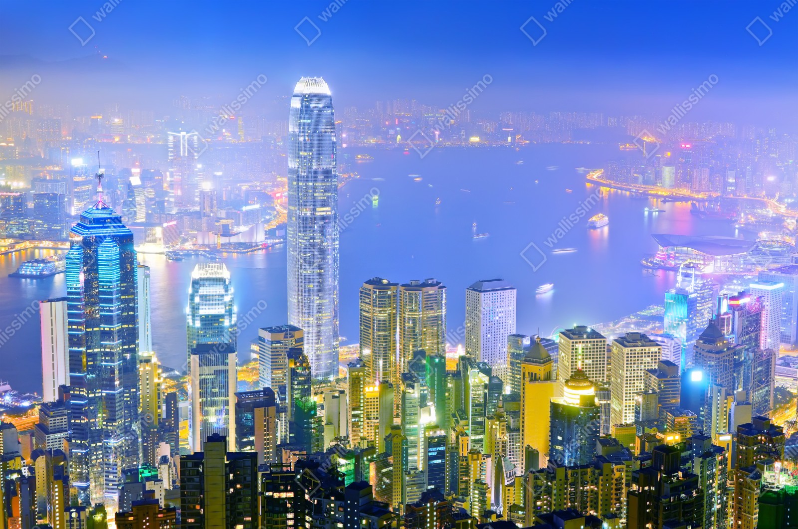 Fototapete Hong Kong skyline bei nacht – Wallnifity®