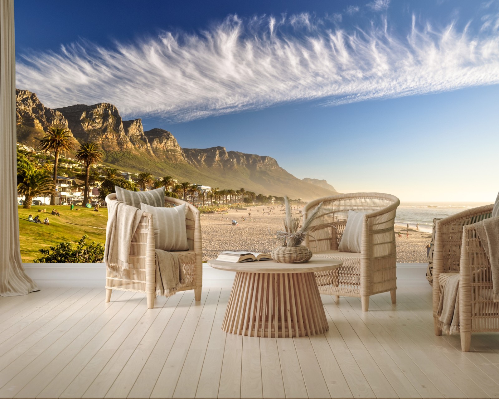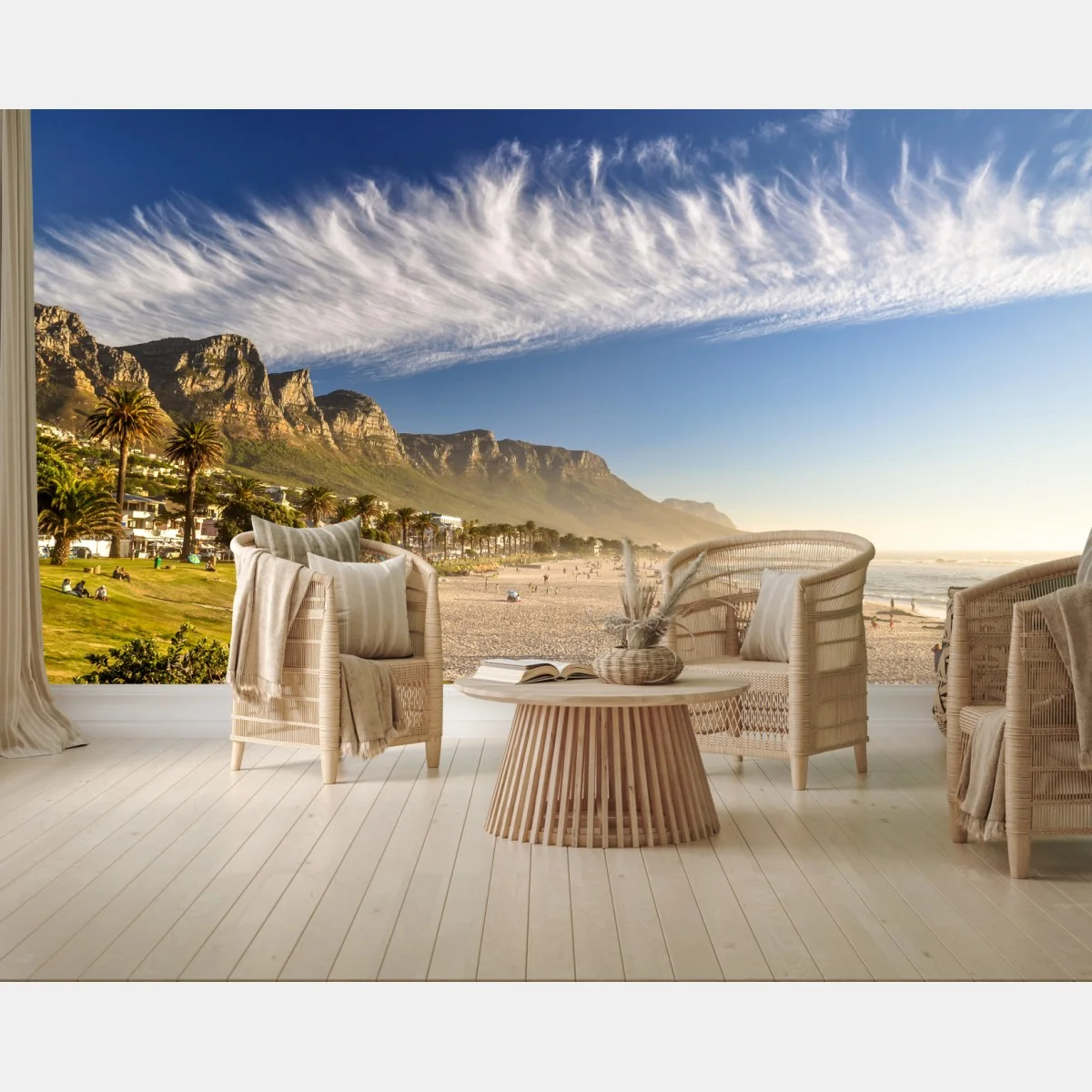 Fototapete Sonnenstrand mit bergkulisse