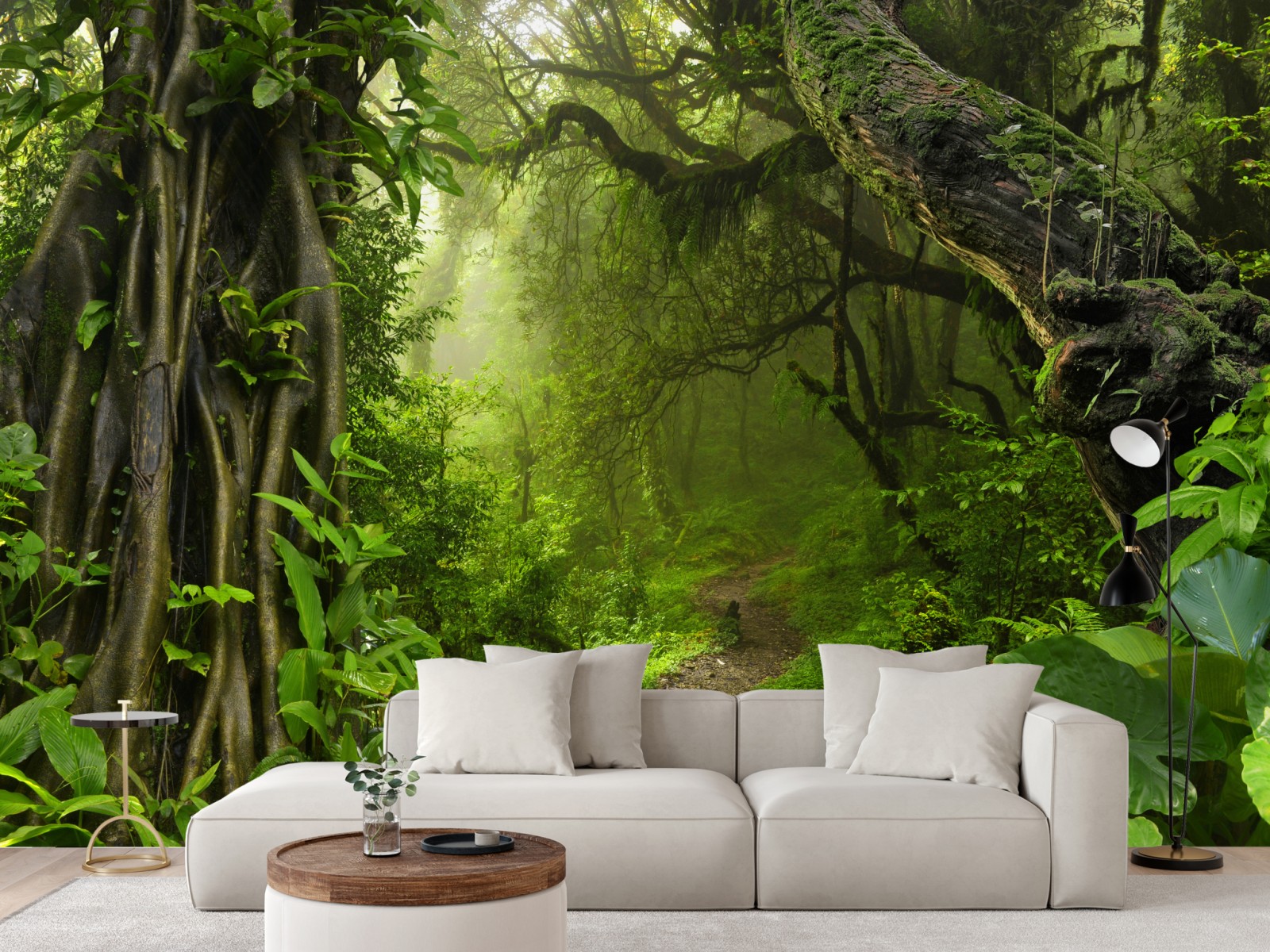 Fototapete üppiger nebliger waldpfad – Wallnifity®