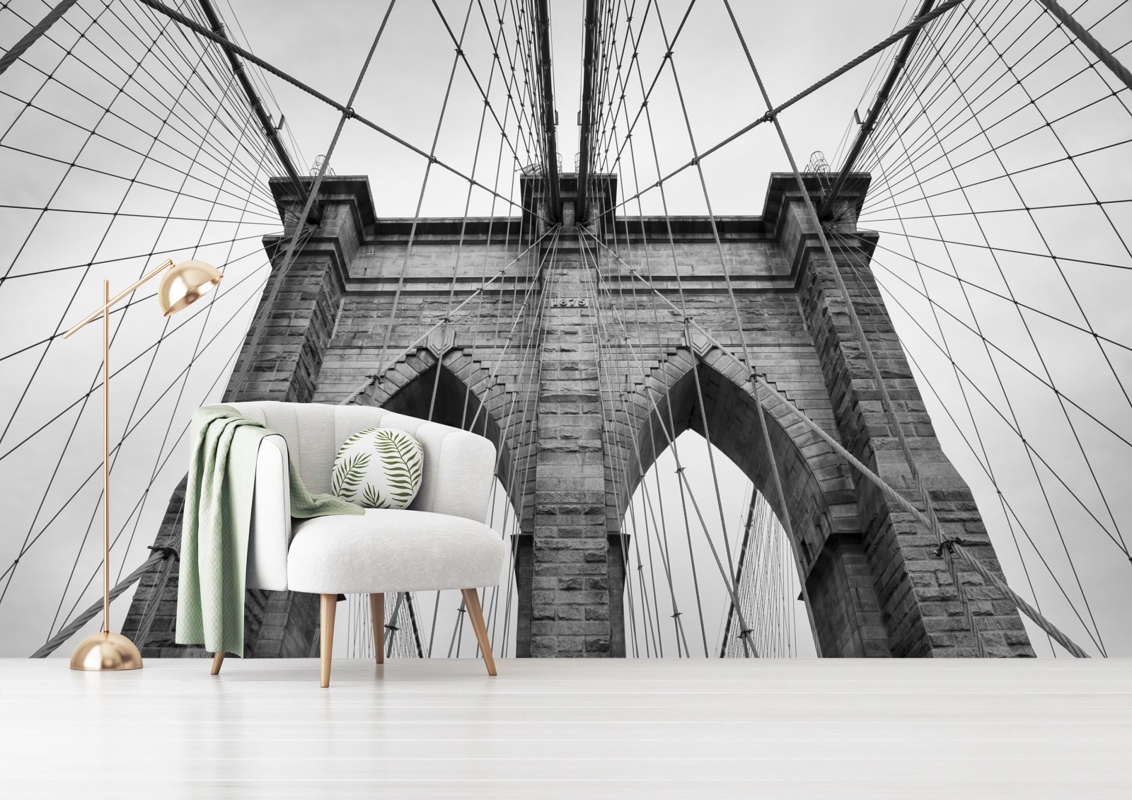 Fototapete Monochrome hängebrücke aus grafischer perspektive