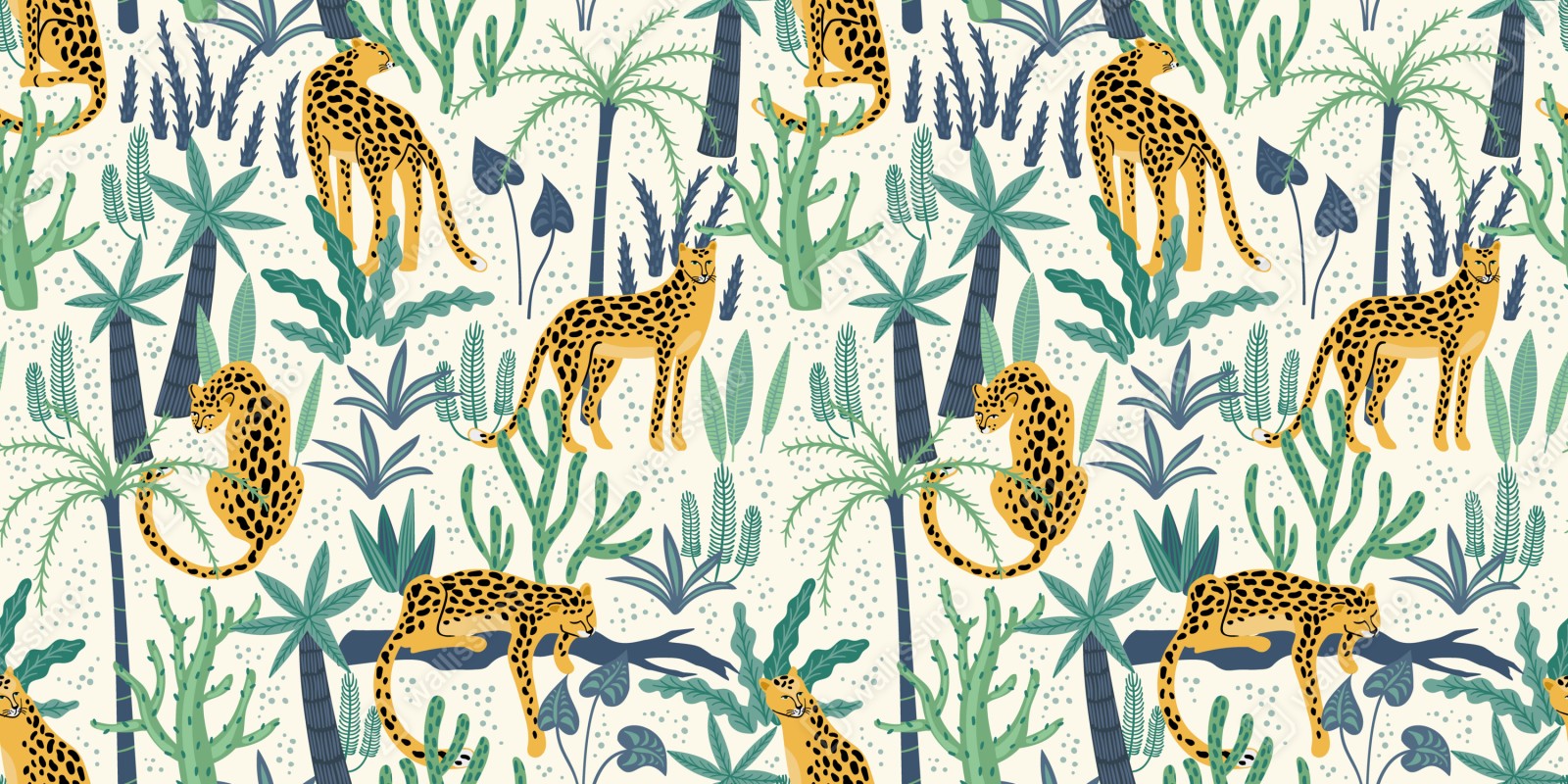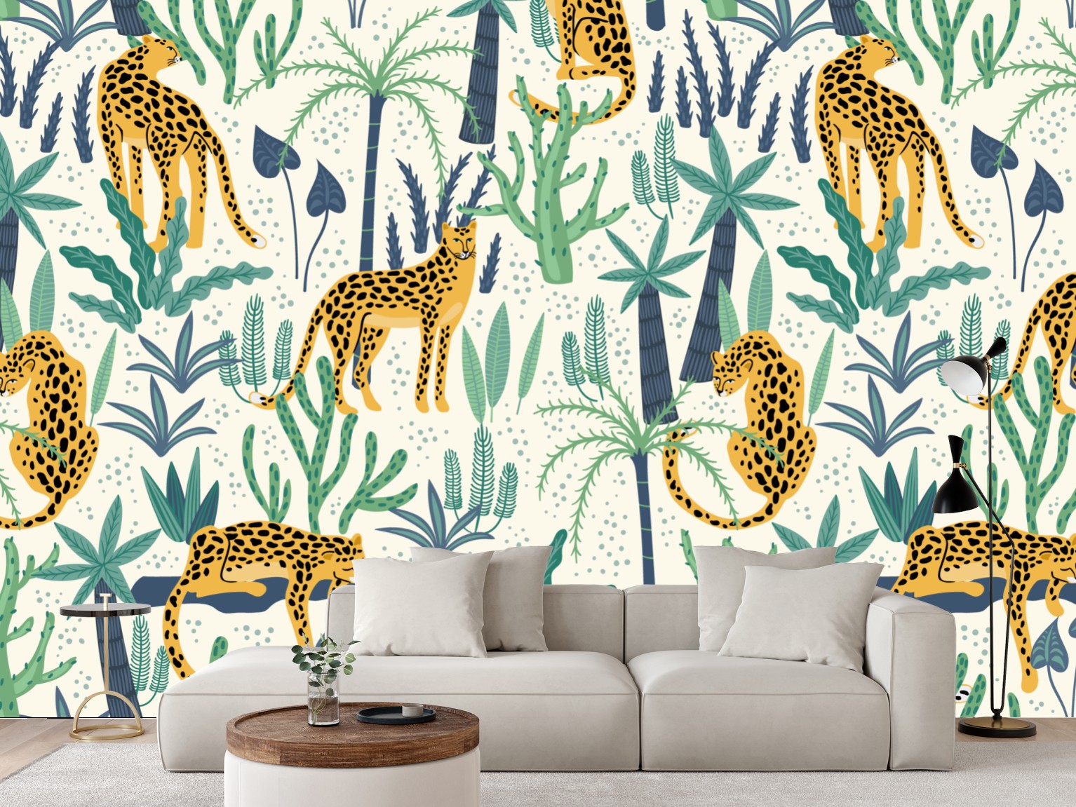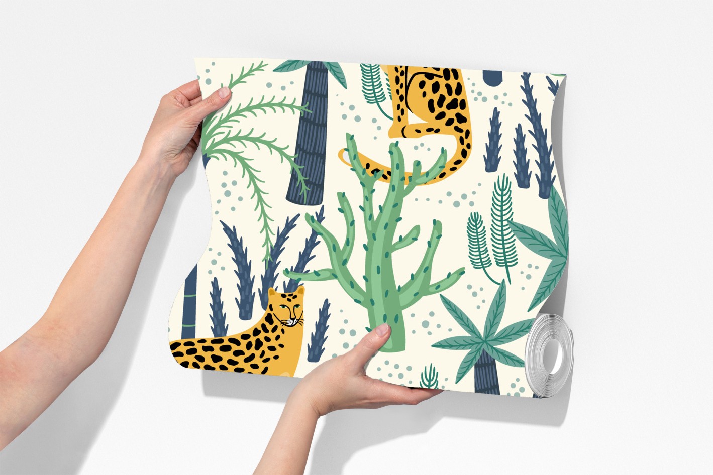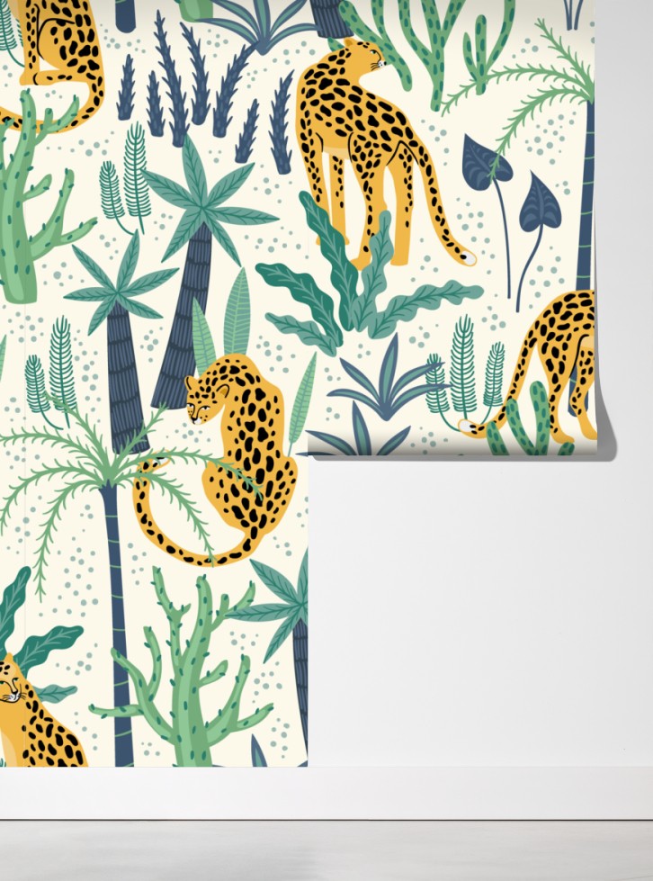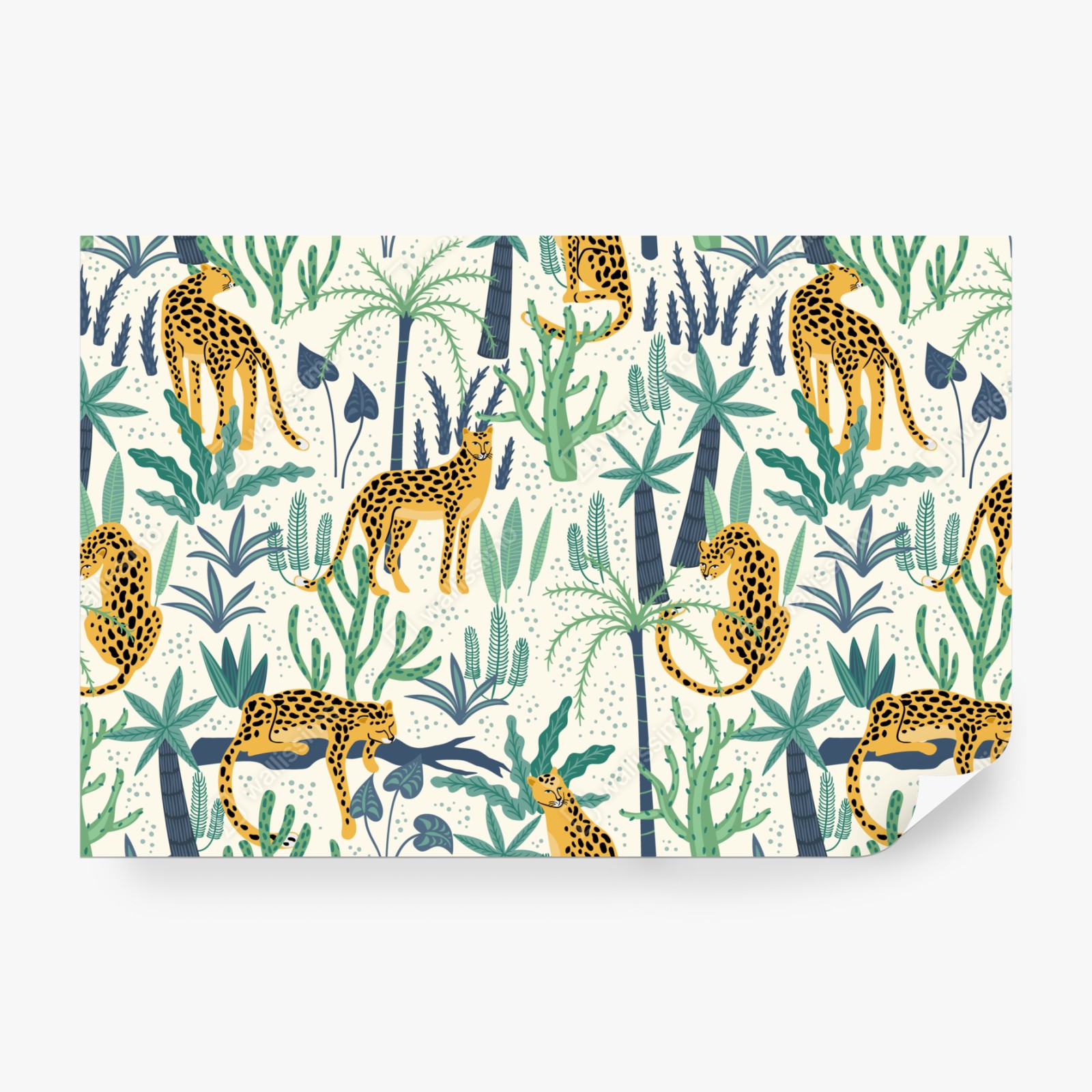 Bringen Sie mit diesem illustrierten tropischen Leopardmuster lebendige, botanische Akzente in Ihr Zuhause und schaffen Sie eine verspielte, naturinspirierte Atmosphäre.