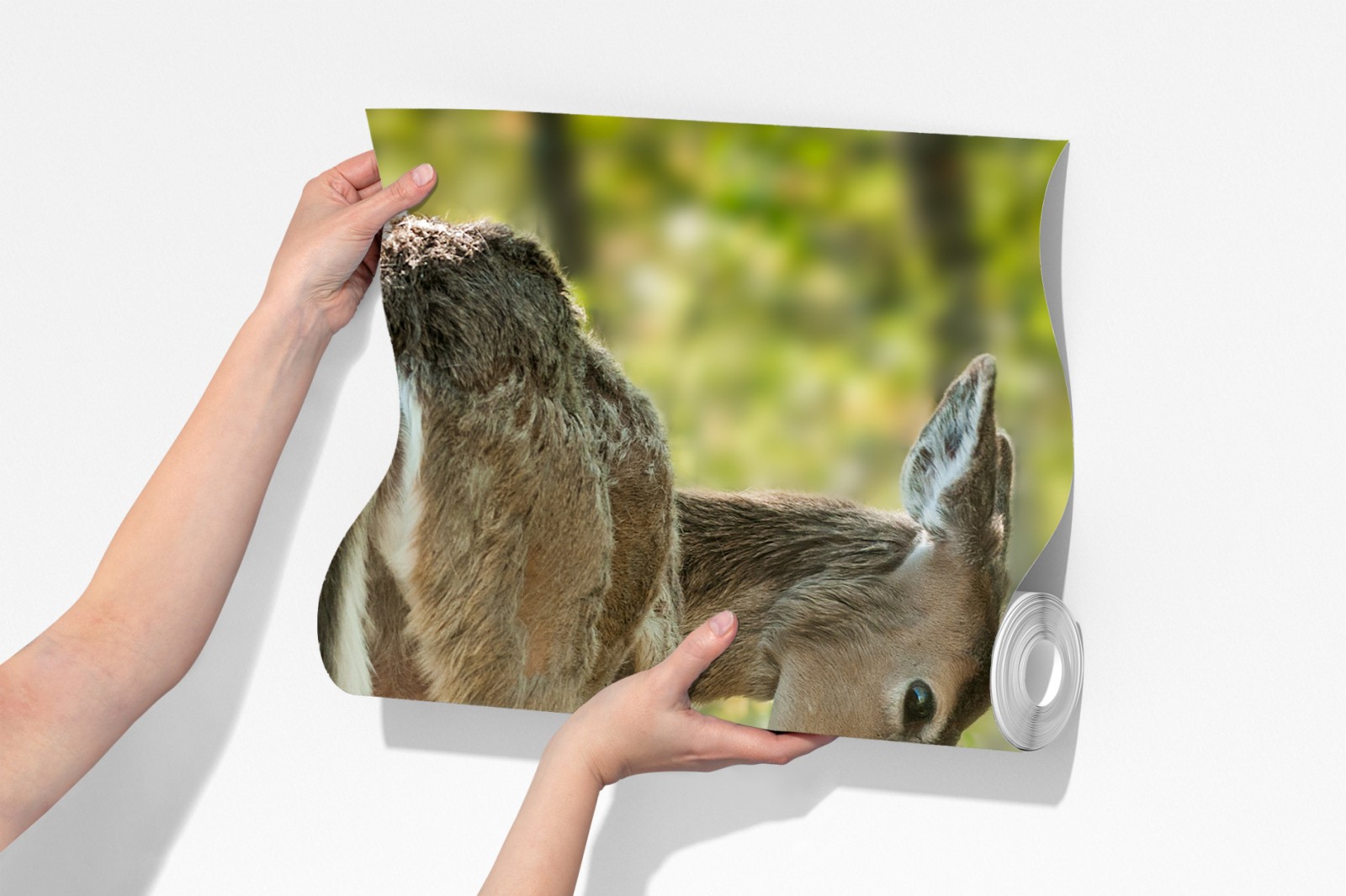 Fototapete hirsch und kitz im sonnendurchfluteten wald