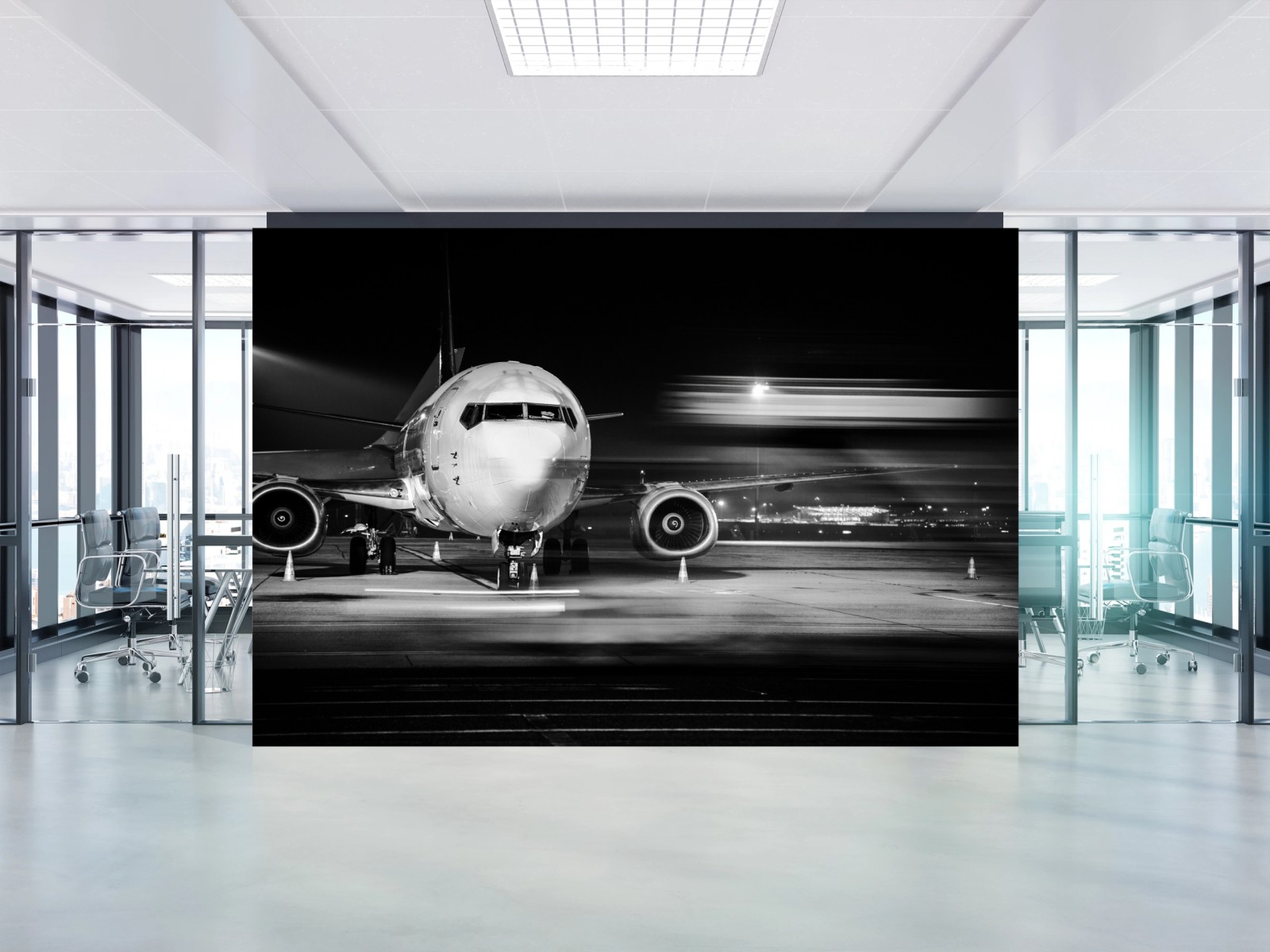 Fototapete Monochromes jet auf dem rollfeld bei nacht