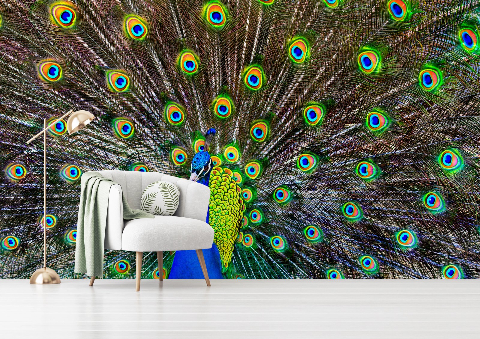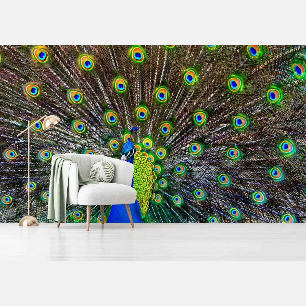 Fototapete Leuchtender fächer aus pfauenfedern