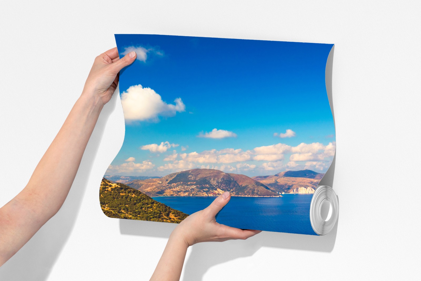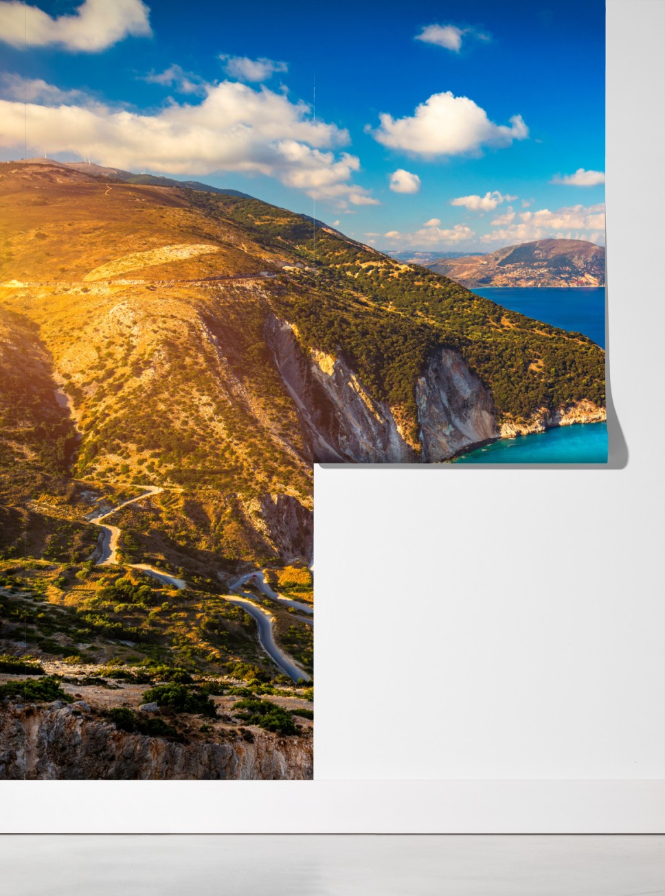Fototapete sonniges panorama der Myrtos-bucht, Kefalonia – Wallnifity®