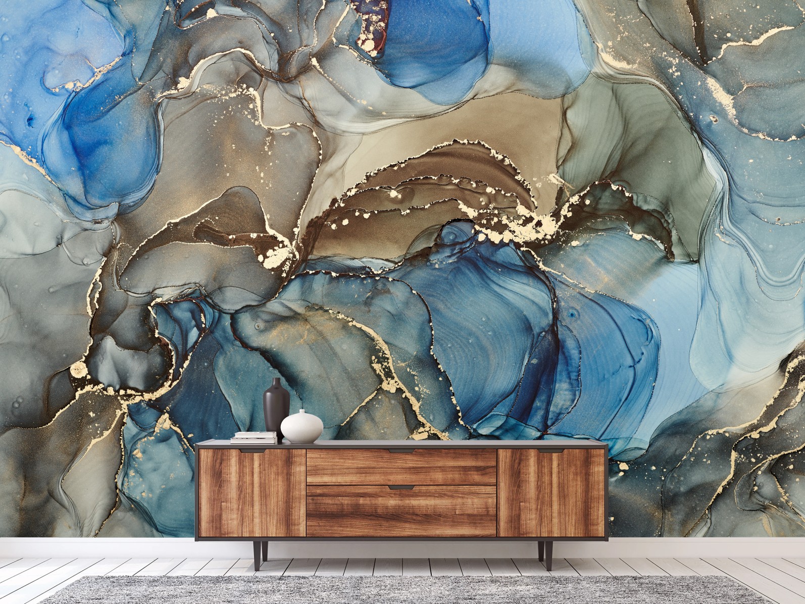 Fototapete Blaue und goldene flüssige abstraktion