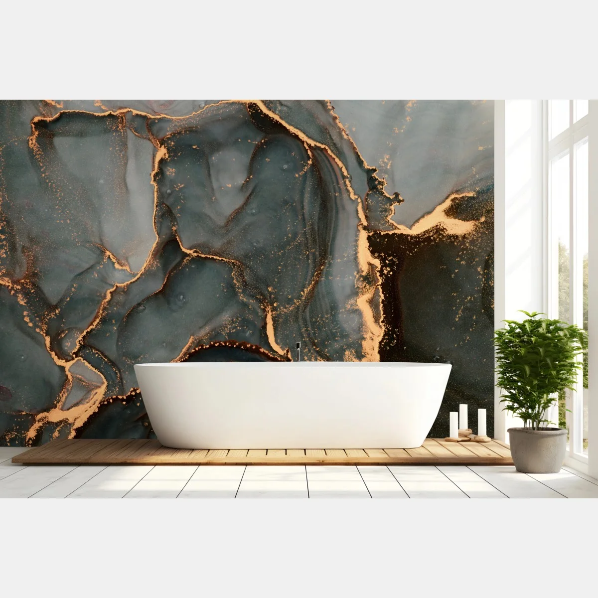 Fototapete Luxuriöse türkis abstraktion mit goldenen adern
