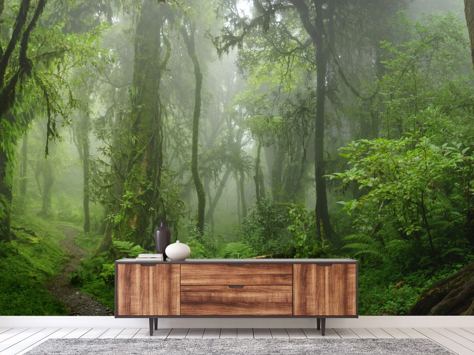 Fototapete Nebliger tropischer dschungelpfad