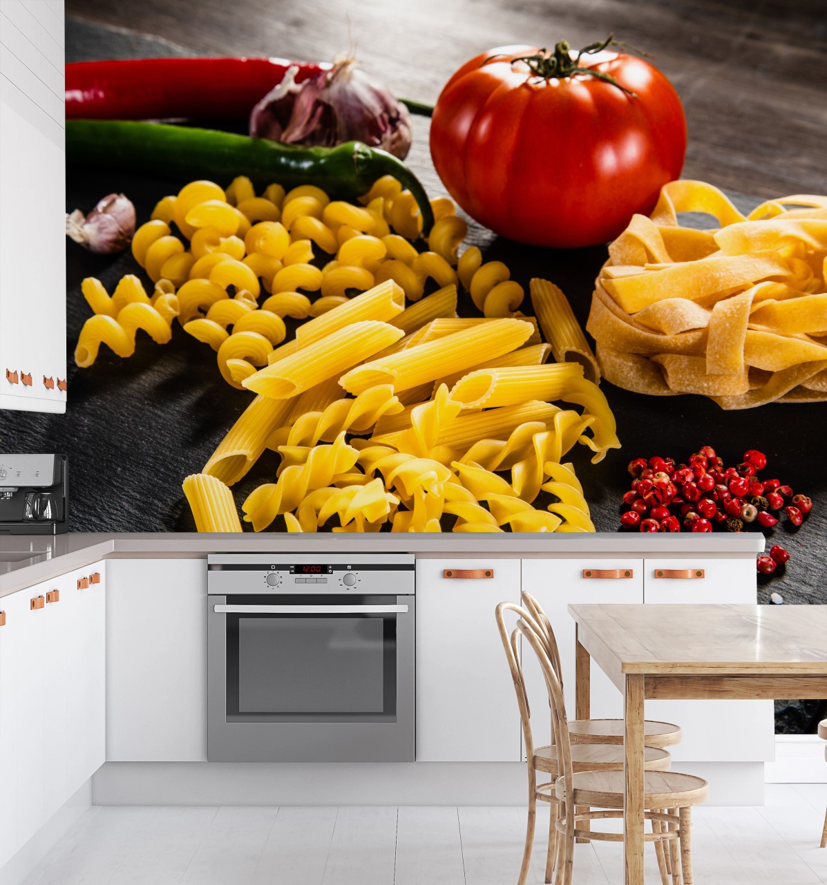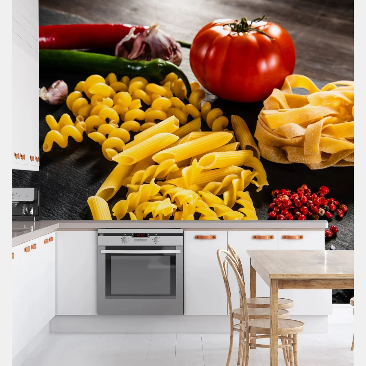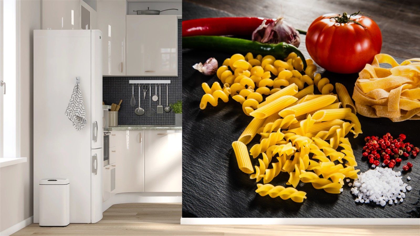 Fototapete Verschiedene trockene nudeln und frische zutaten