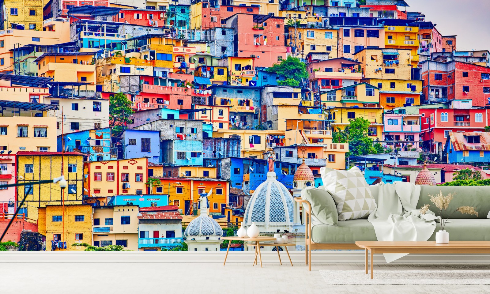 Fototapete Bunte häuser von Las Peñas am Santa Ana hügel, Guayaquil