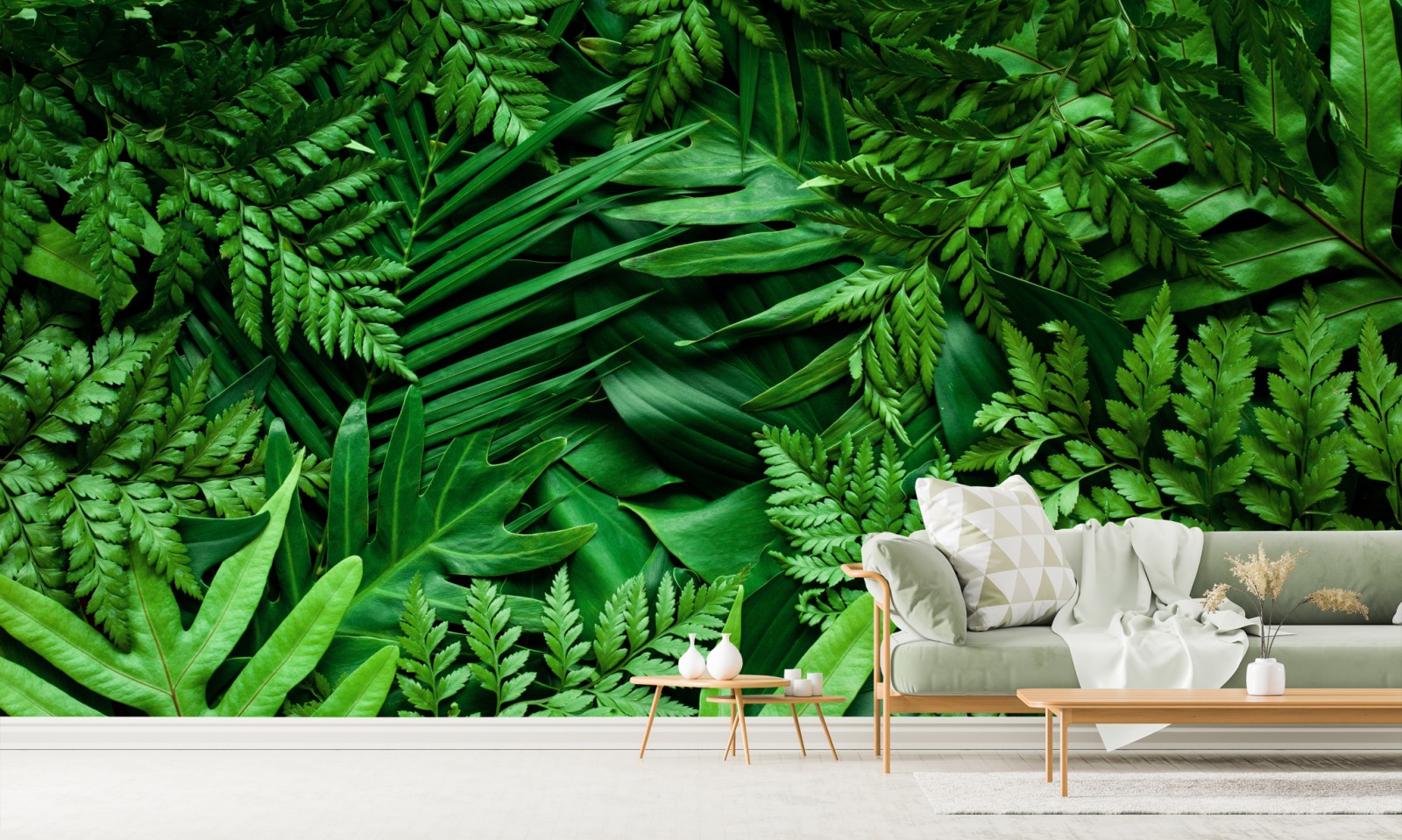 Lebendige Anordnung tropischer Blätter bringt einen beruhigenden, natürlichen Akzent in jeden Raum und schafft eine frische, biophile Atmosphäre.