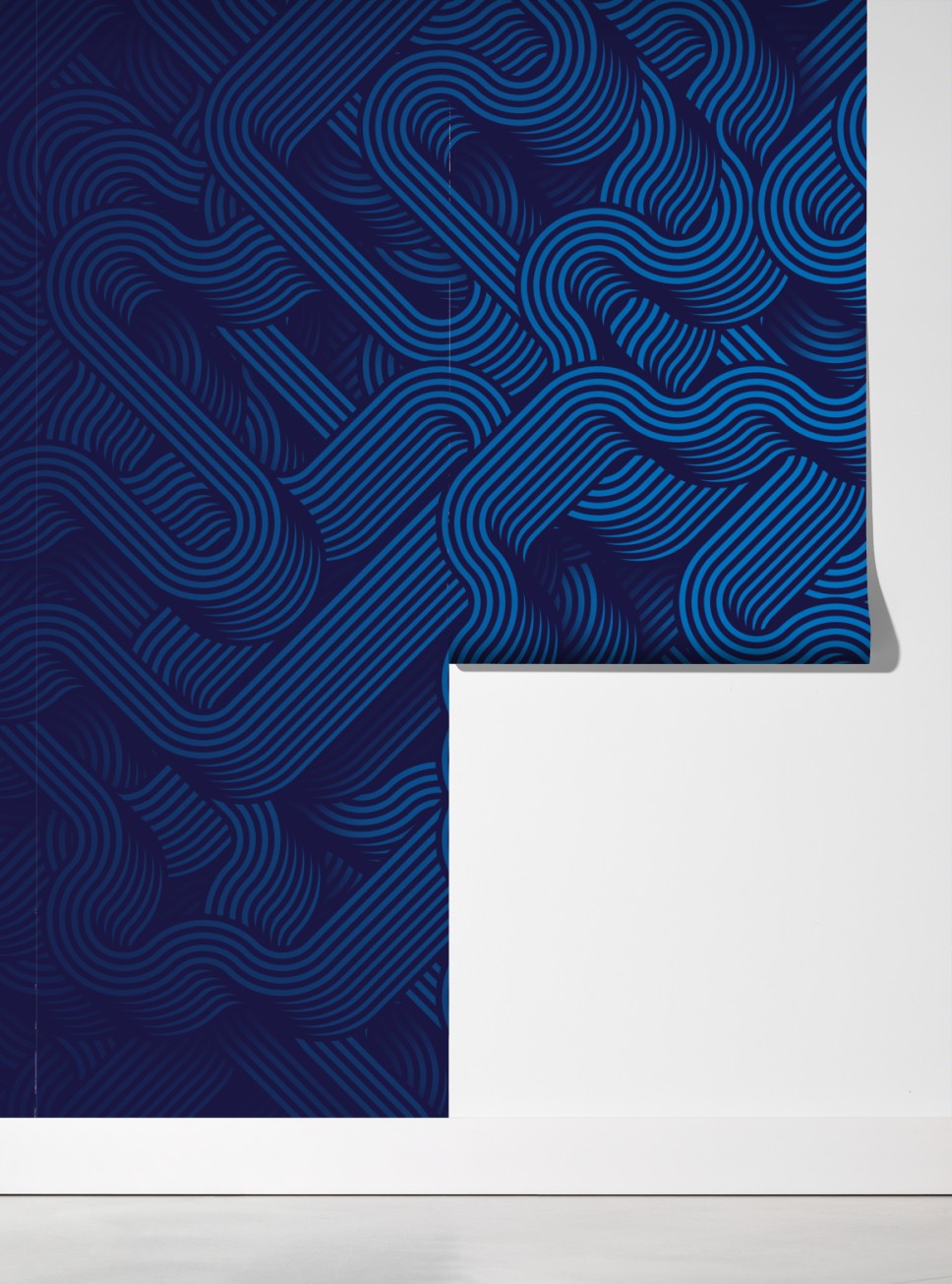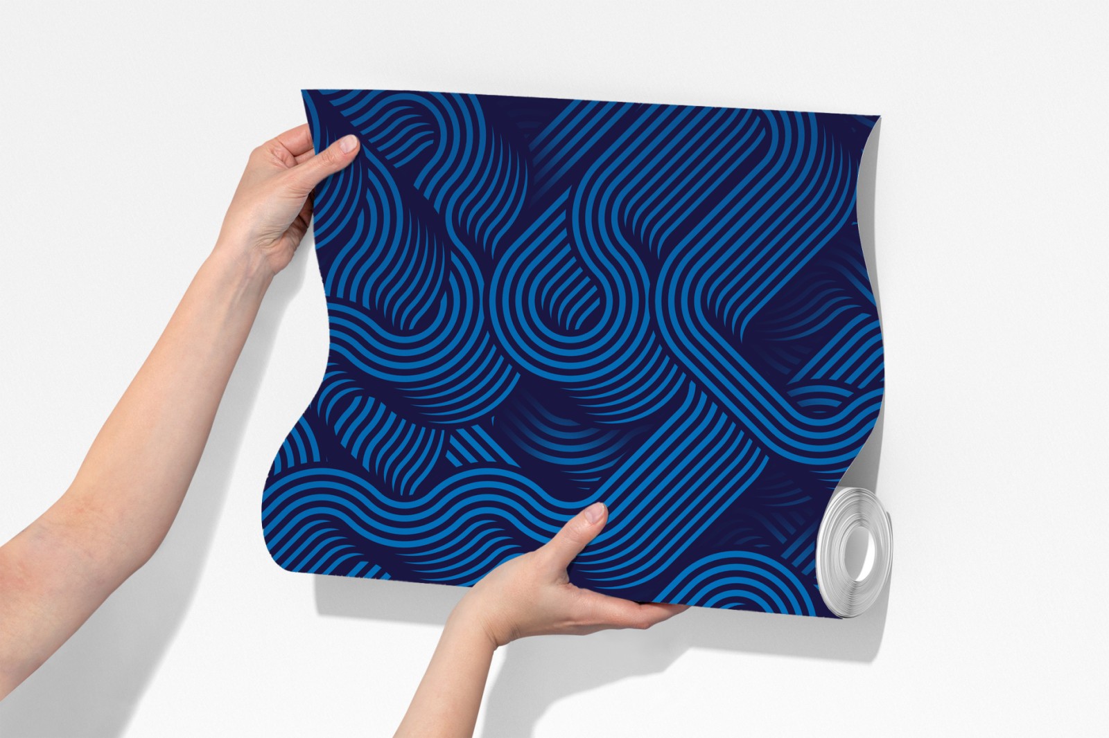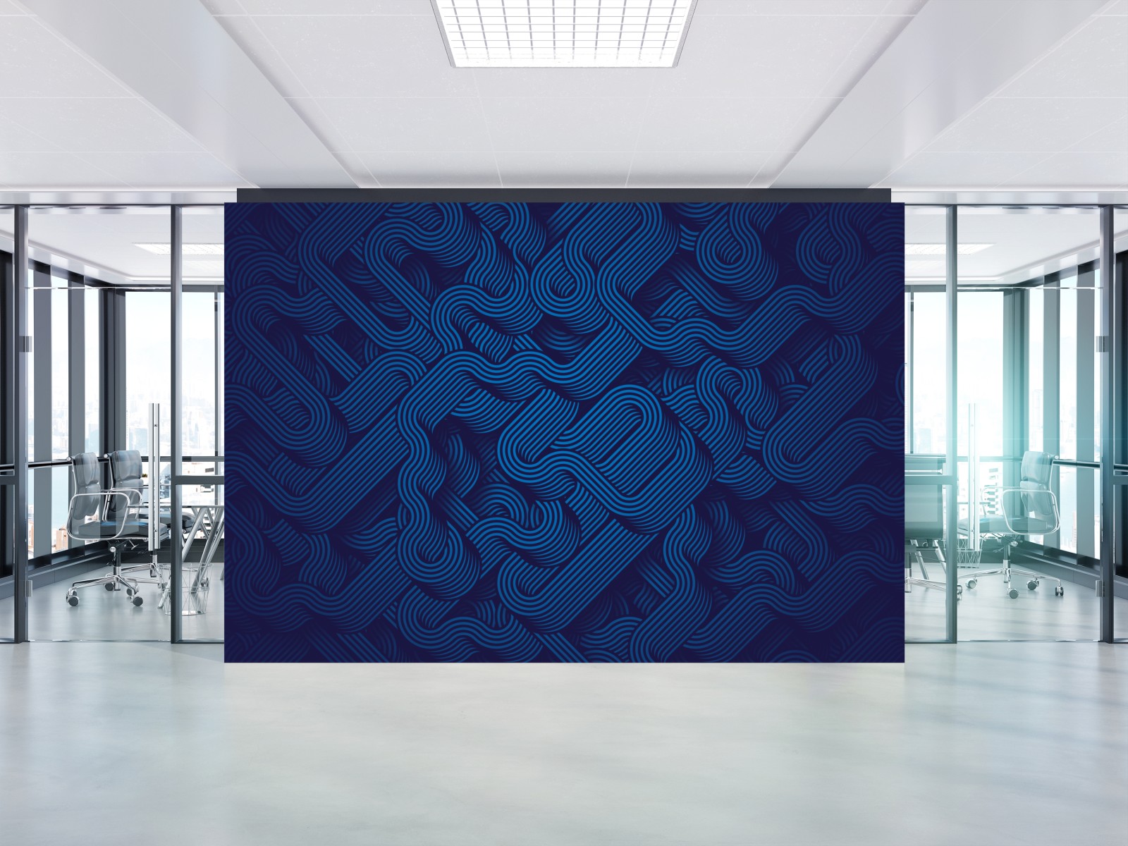 Kräftiges tiefblaues abstraktes Linienmuster, das jedem Raum moderne Energie und Tiefe verleiht.