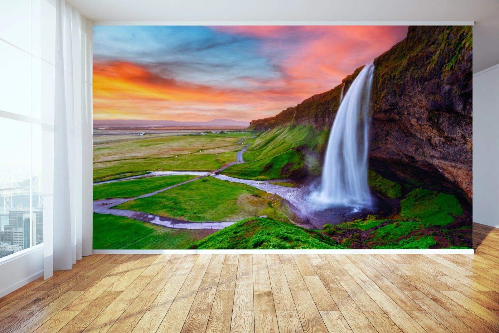 Fototapete Wasserfall Seljalandsfoss bei sonnenuntergang