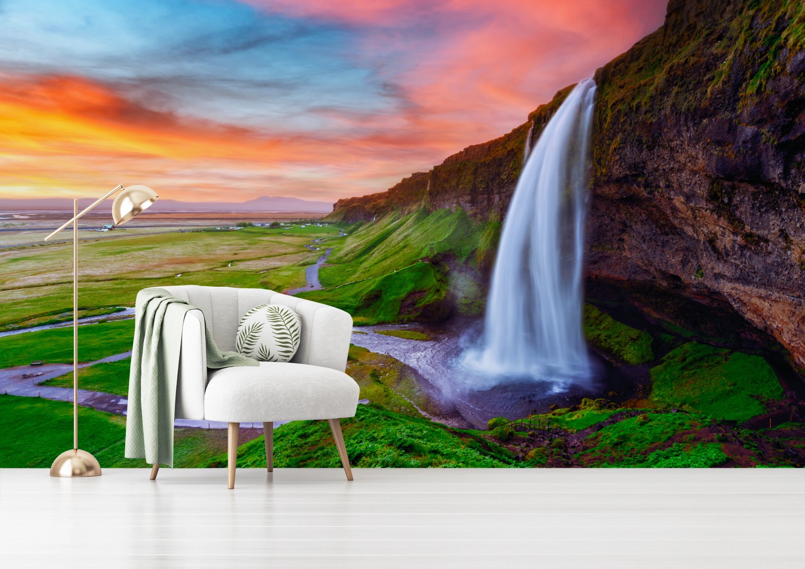 Fototapete Wasserfall Seljalandsfoss bei sonnenuntergang