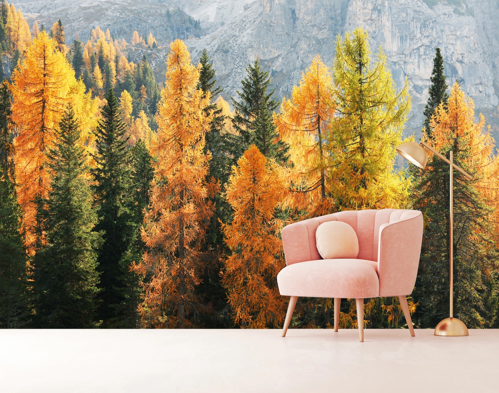 Fototapete Goldener herbstlicher lärchenwald