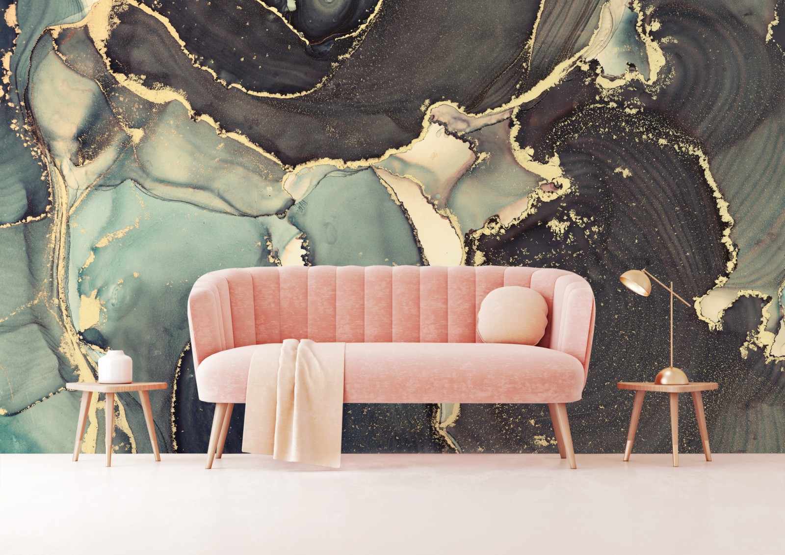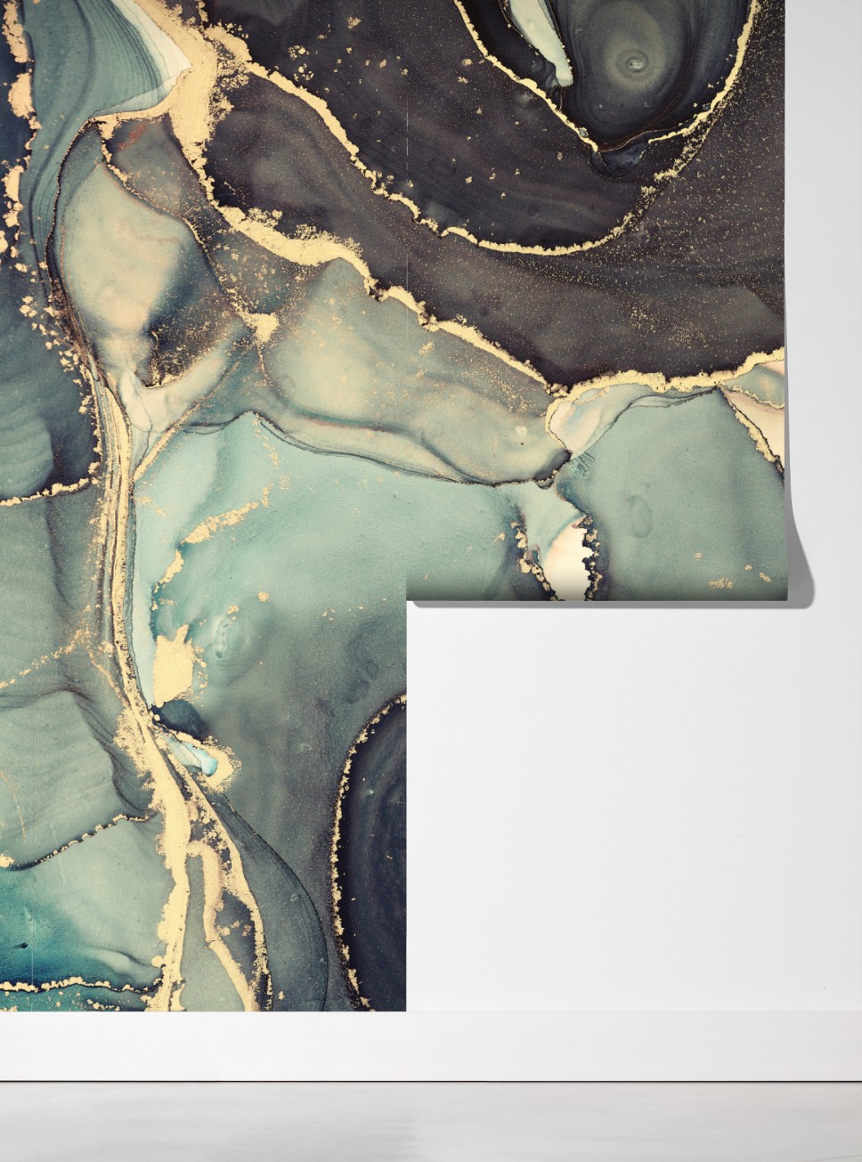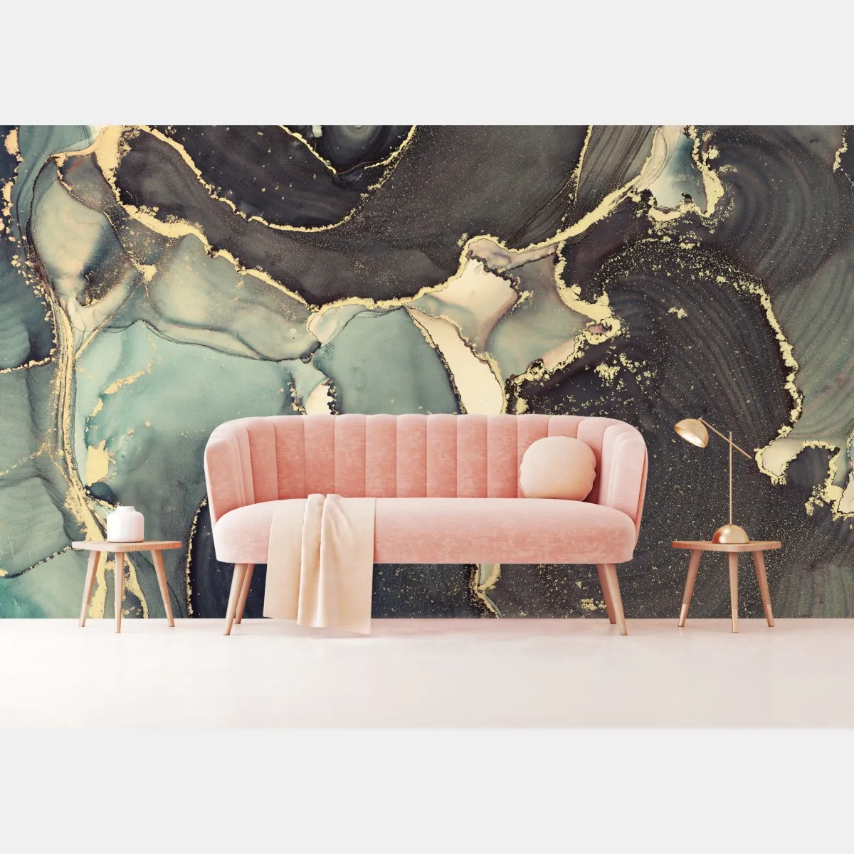 Elegante türkis-goldene abstraktion schafft eine traumhafte, luxuriöse atmosphäre im interieur.