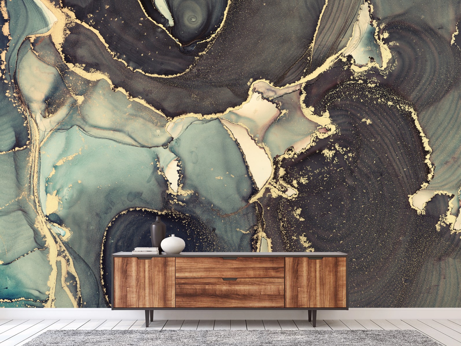 Fototapete Türkis und gold abstrakte fließmalerei