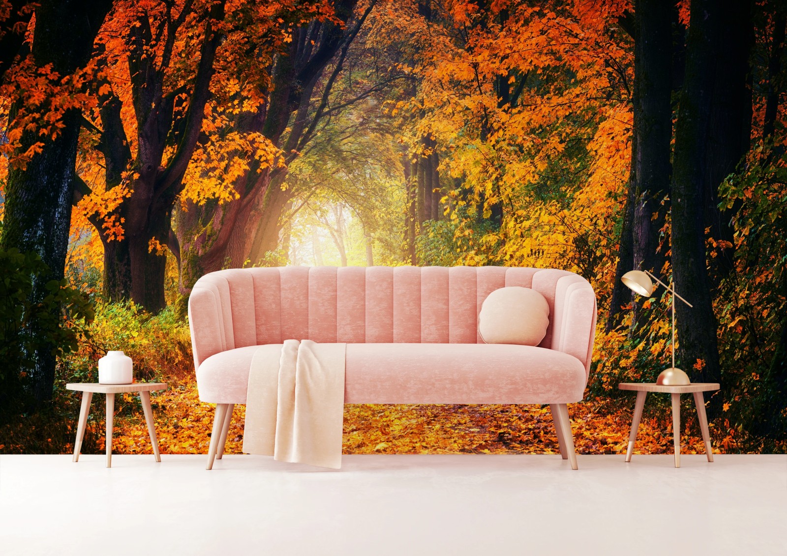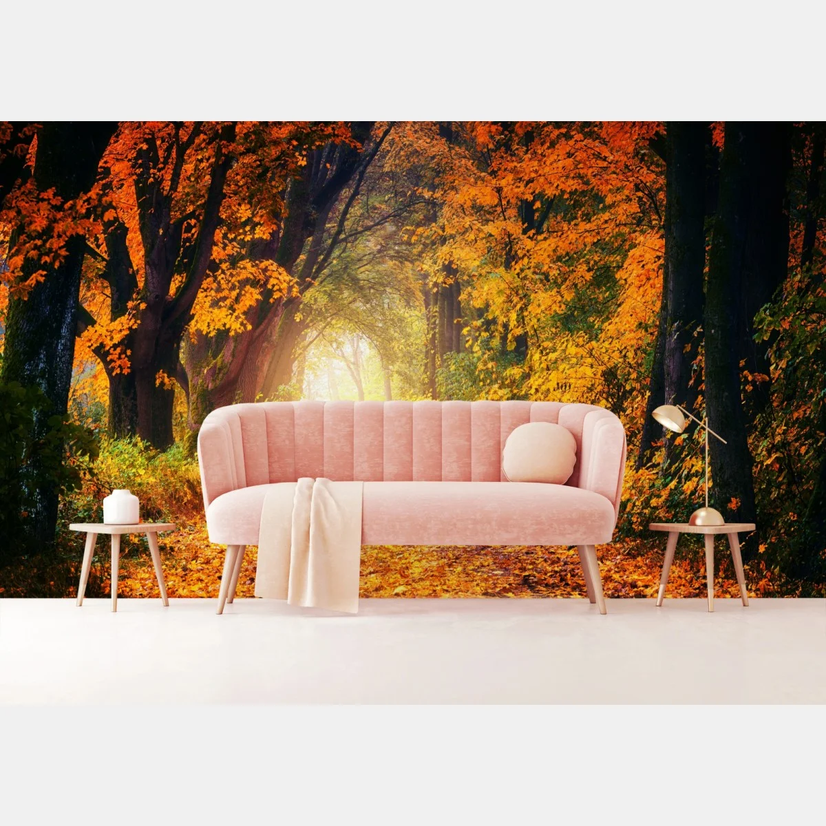 Fototapete Herbstlicher waldpfad im goldenen licht