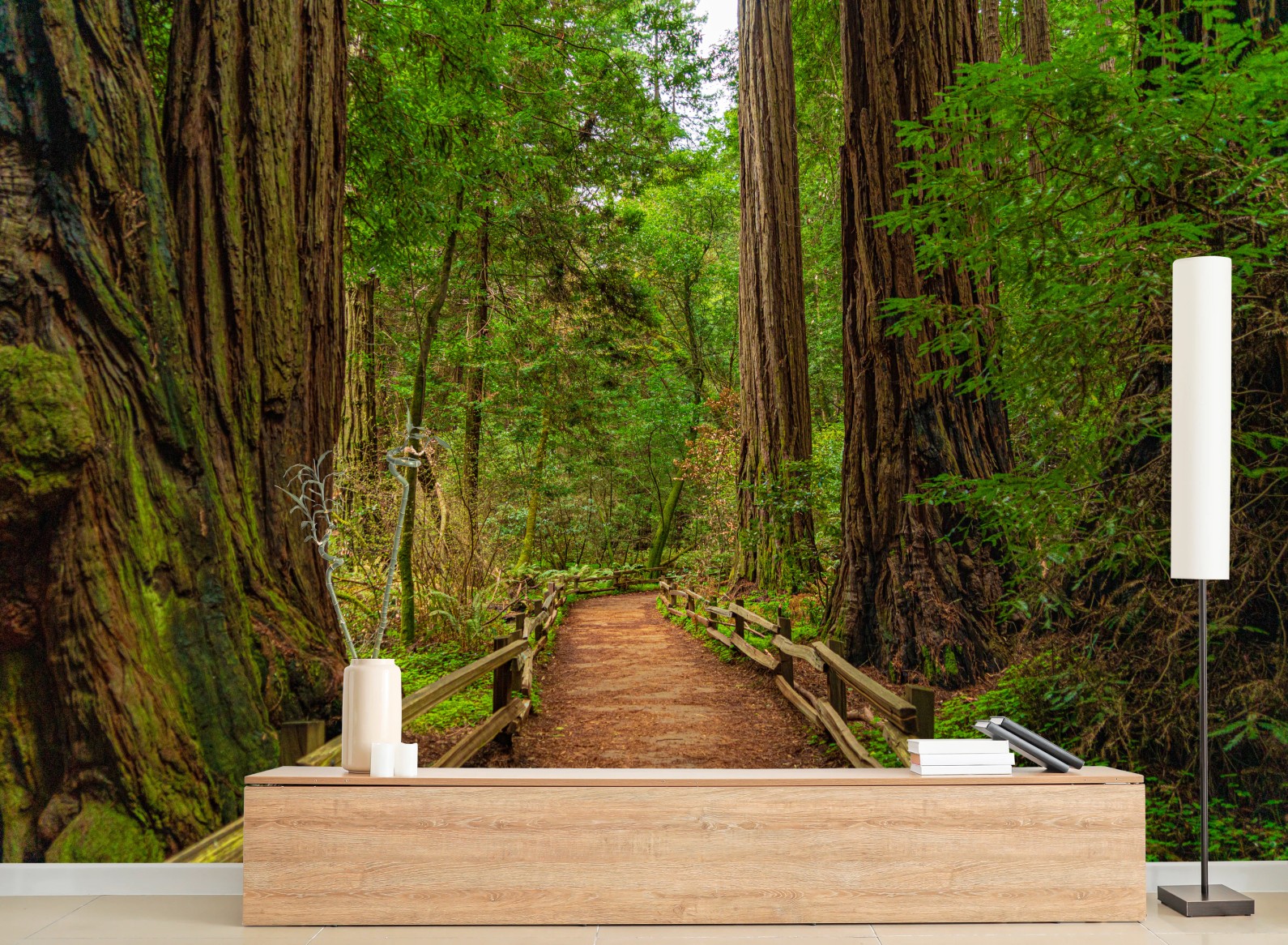 Fototapete Majestätischer waldpfad zwischen mammutbäumen