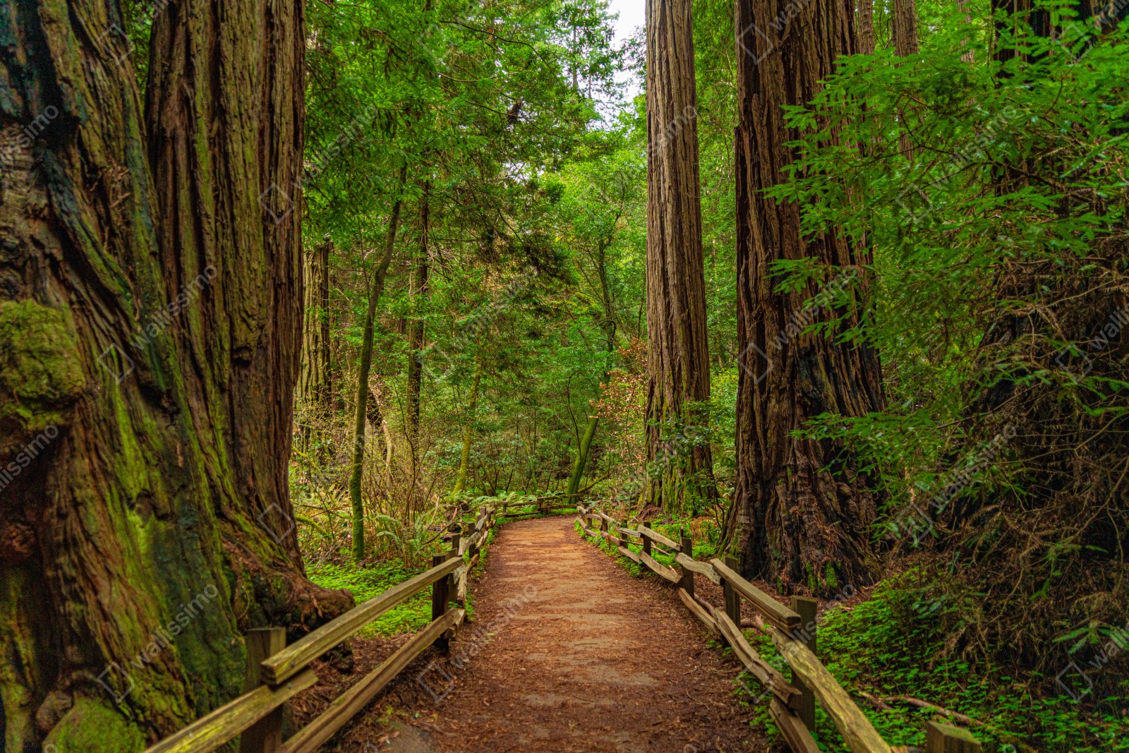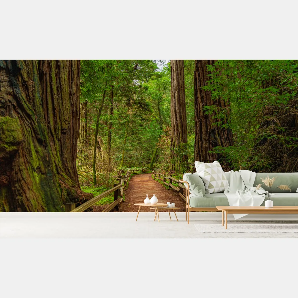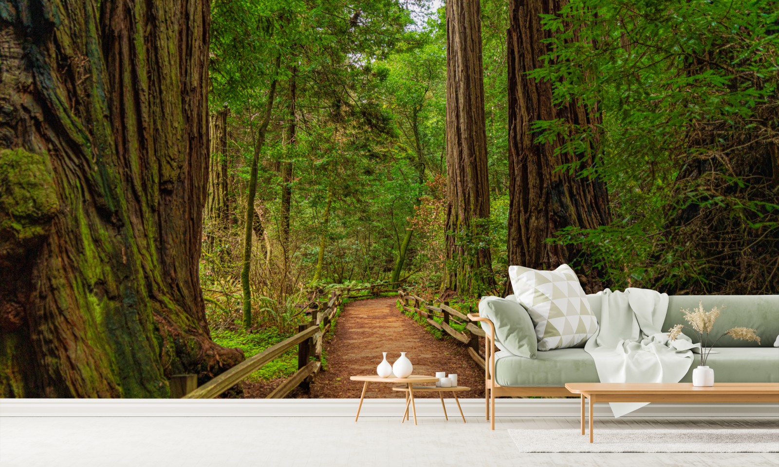 Fototapete majestätischer waldpfad zwischen mammutbäumen