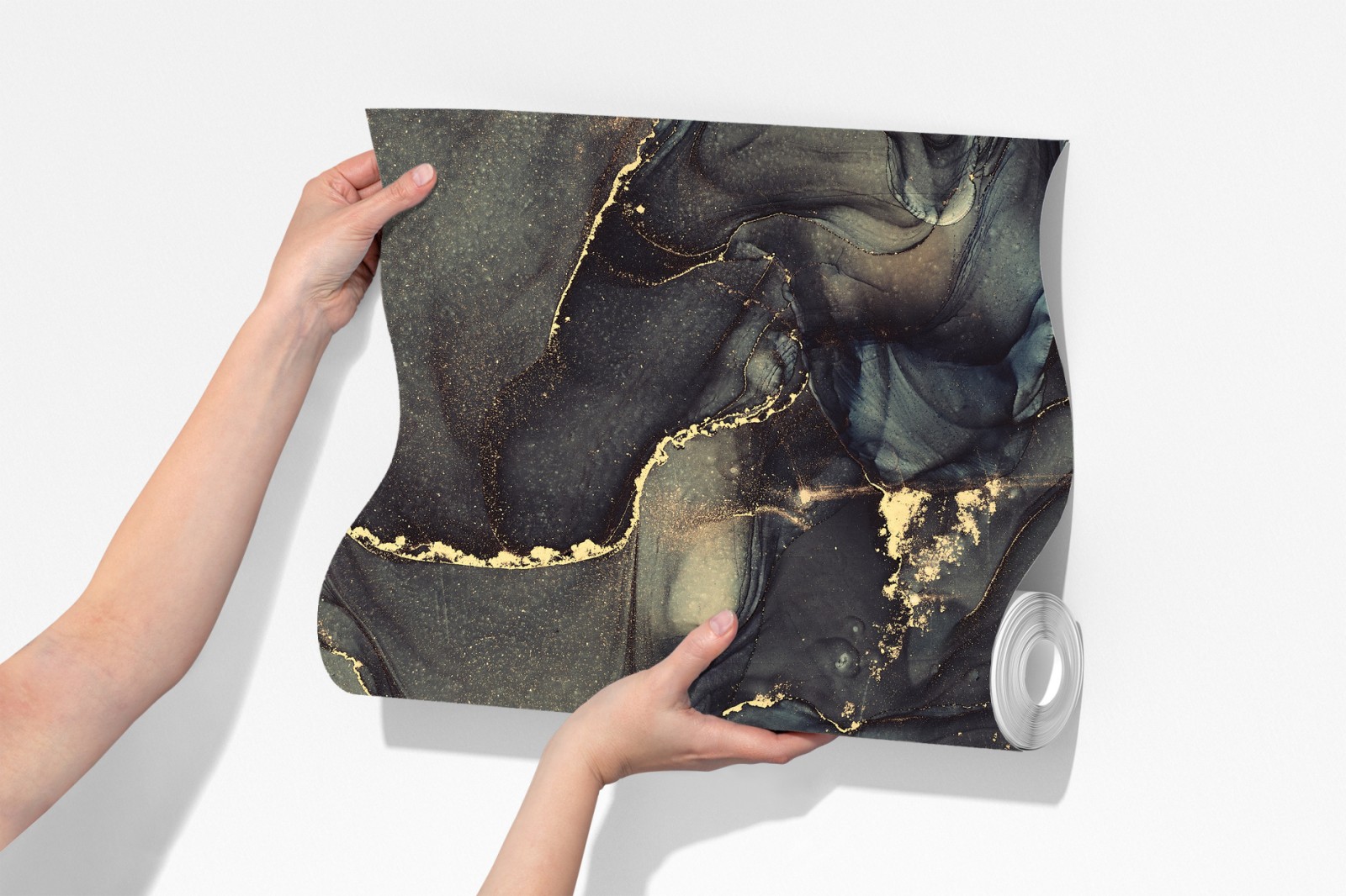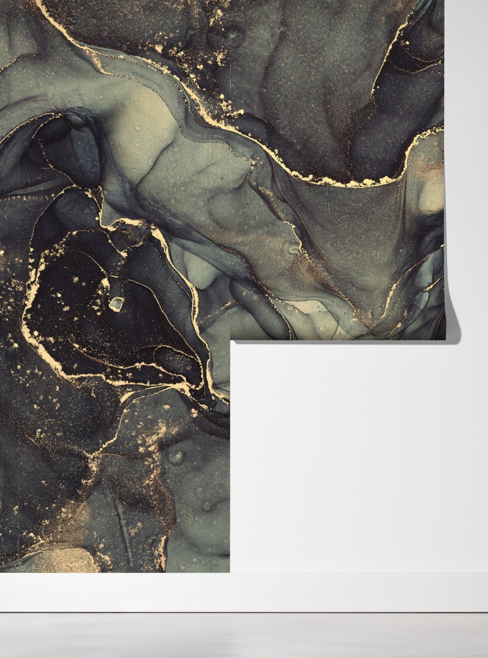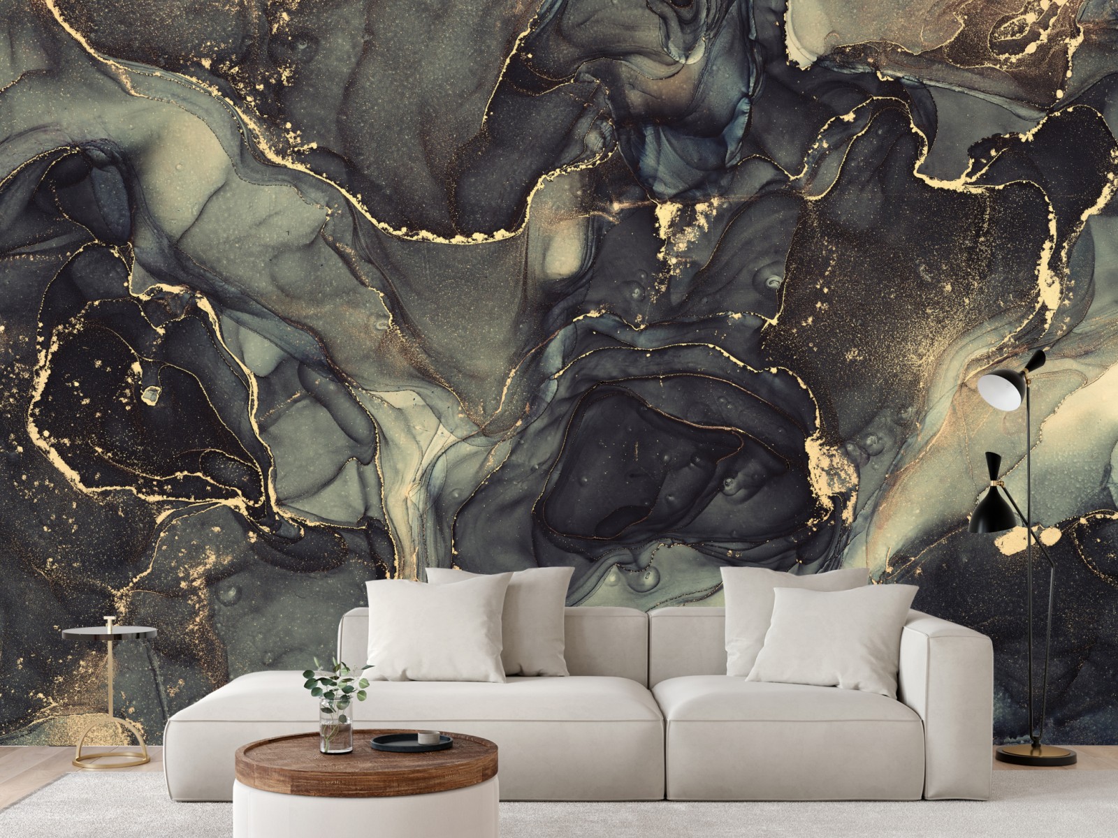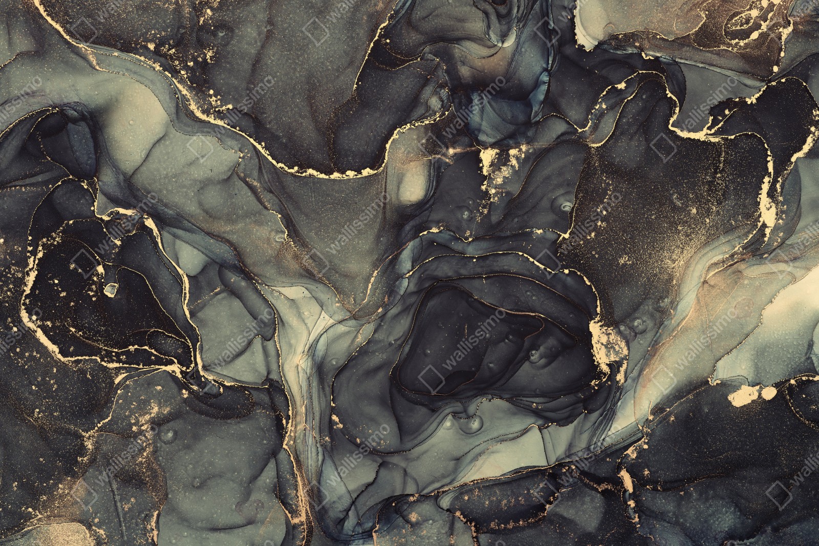 Fototapete luxuriöse abstrakte alkoholtinten-kunst mit goldenen adern – Wallnifity®