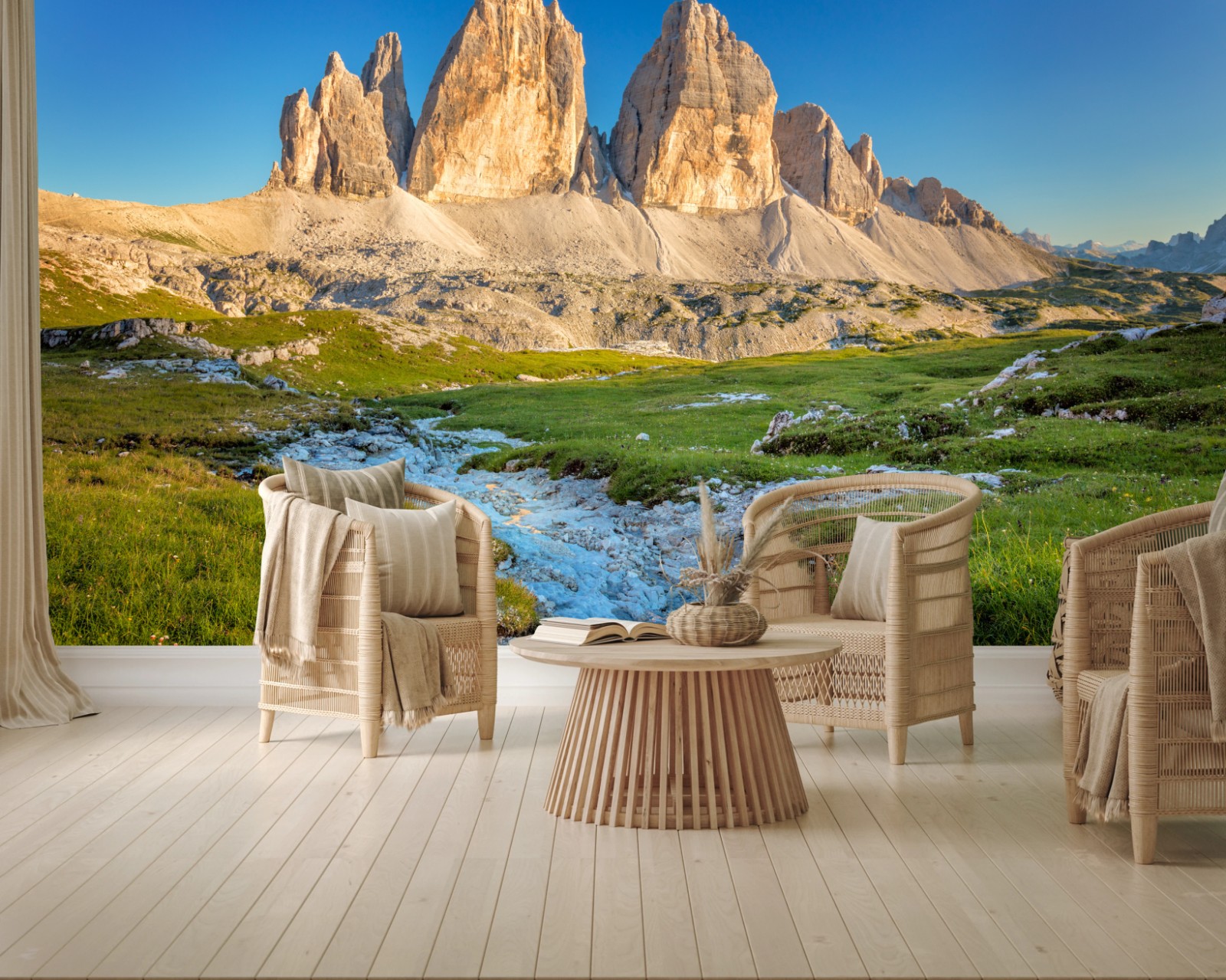 Fototapete Tre Cime di Lavaredo über der alpenwiese