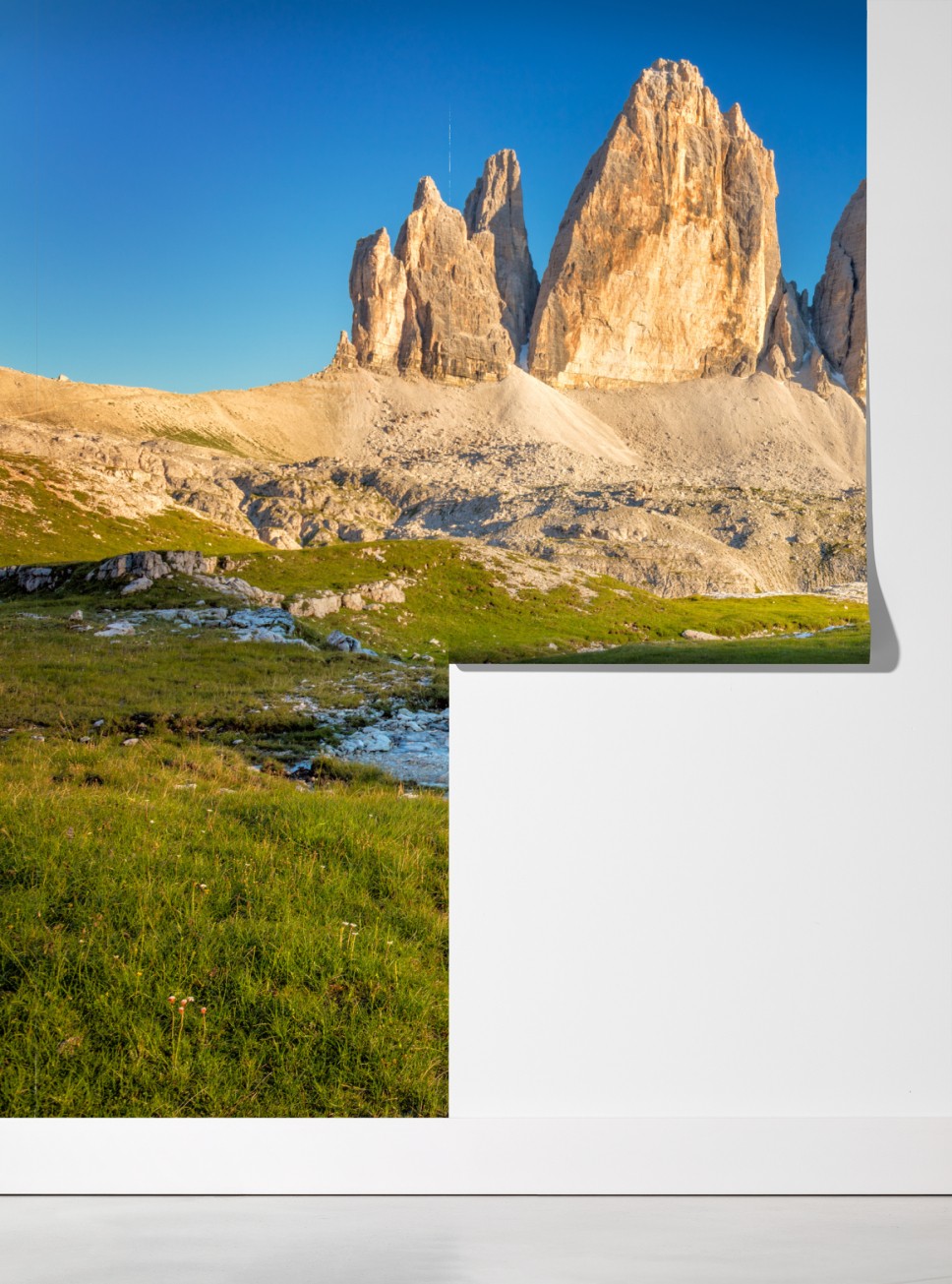 Fototapete Tre Cime di Lavaredo über der alpenwiese