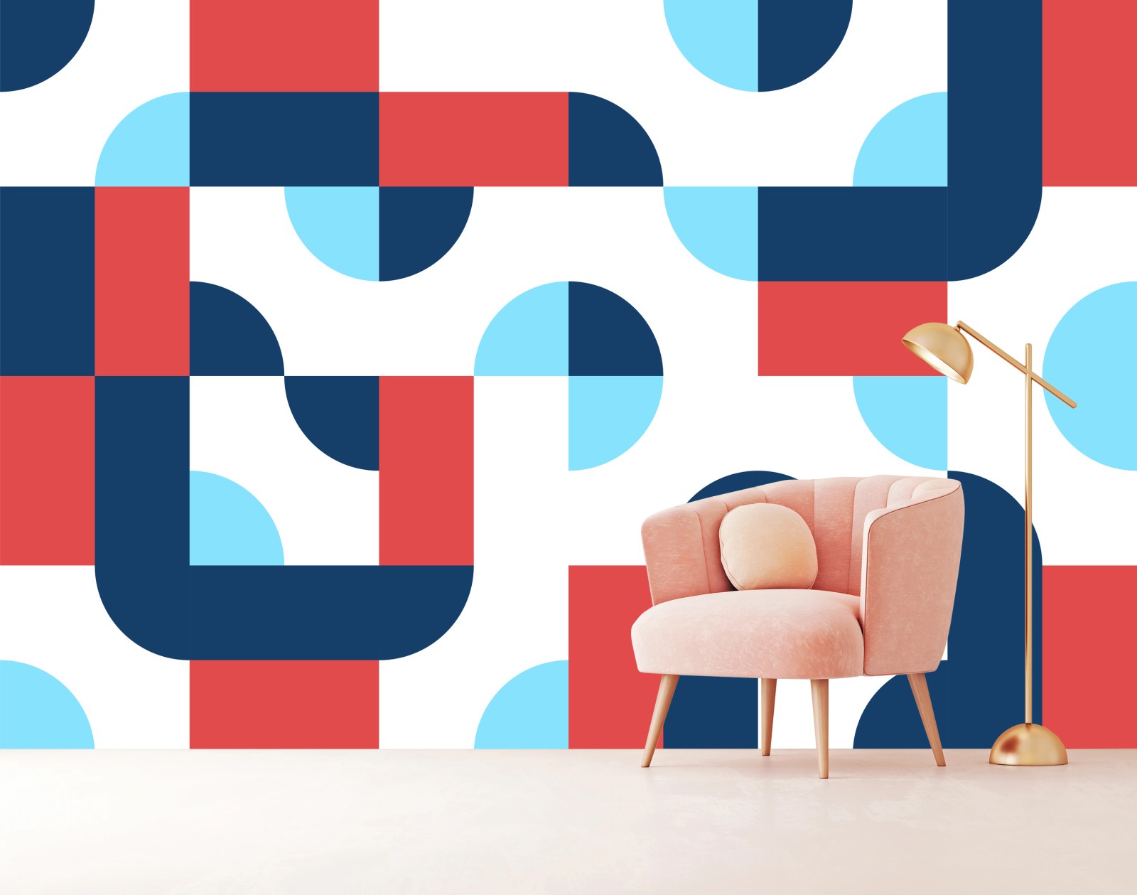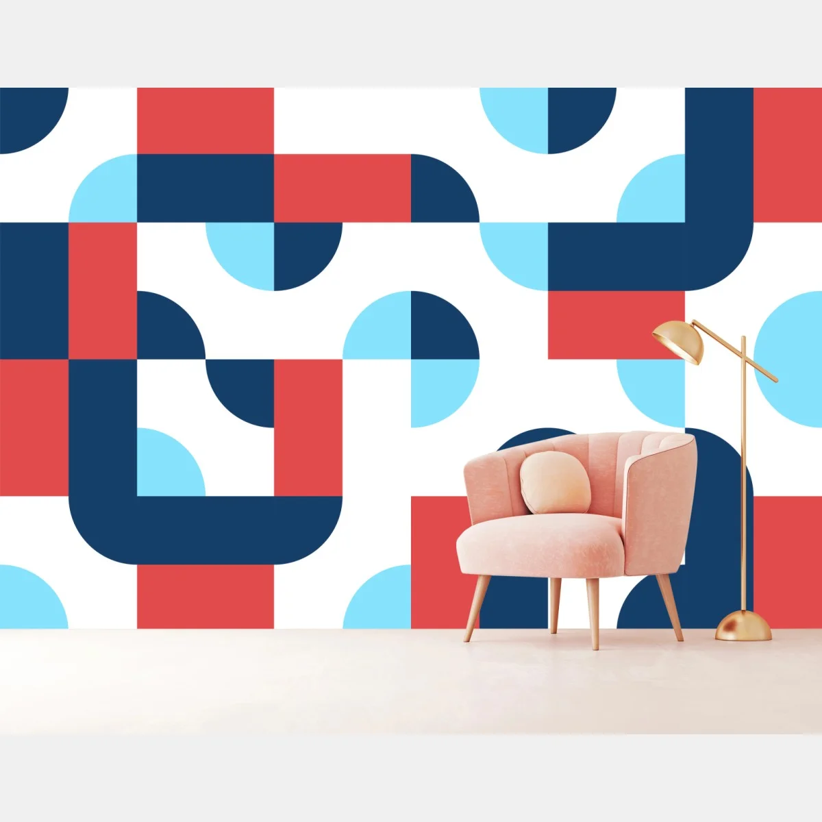 Fototapete Mutiges geometrisches muster in dunkelblau und koralle
