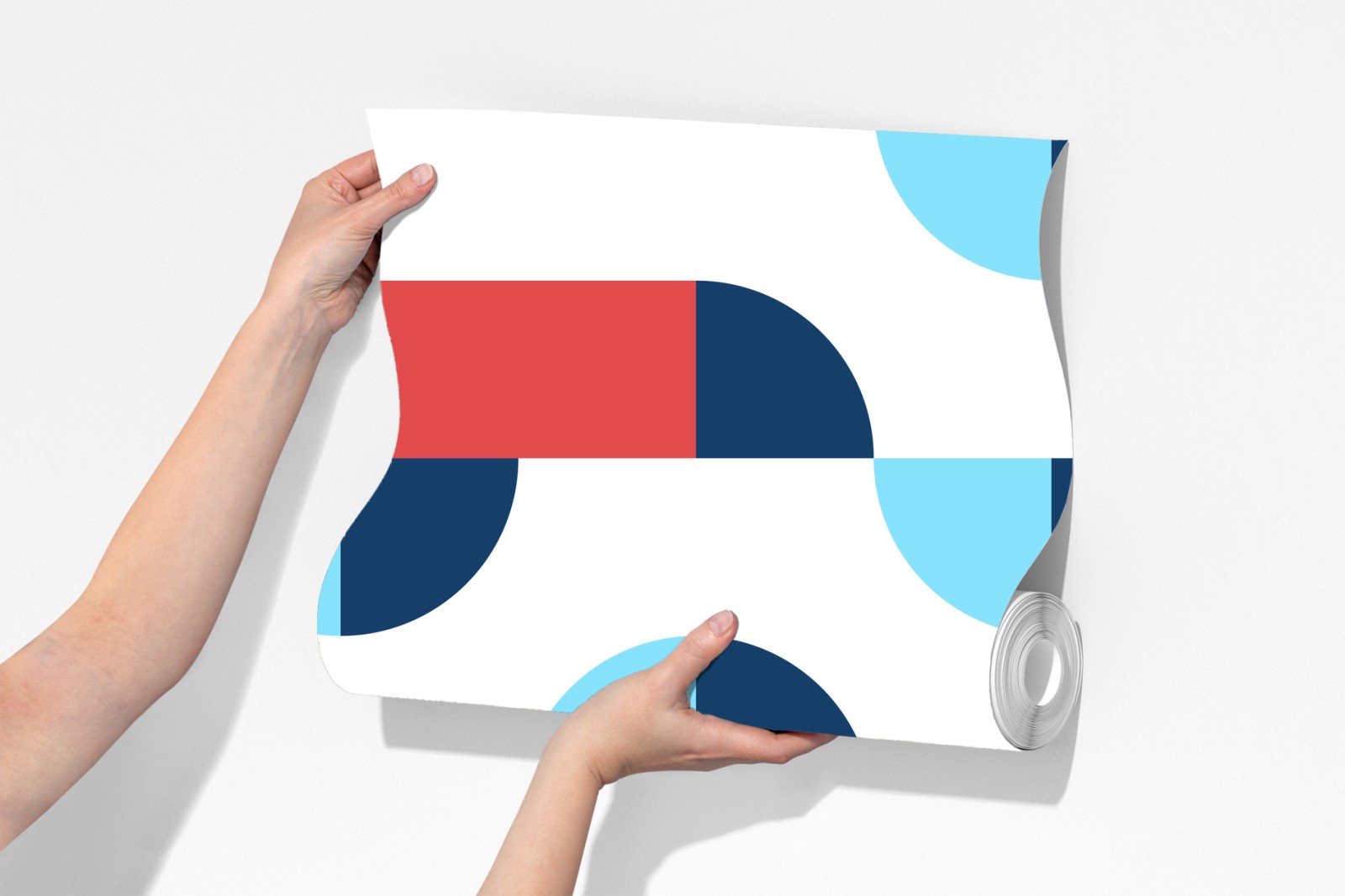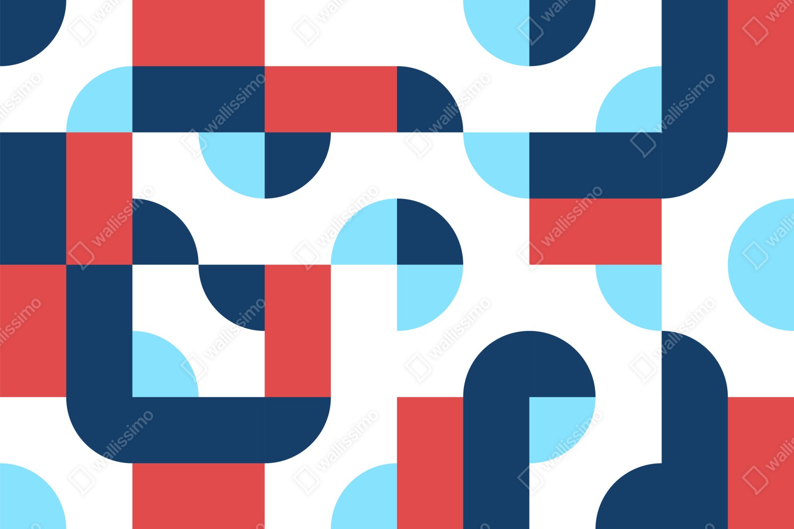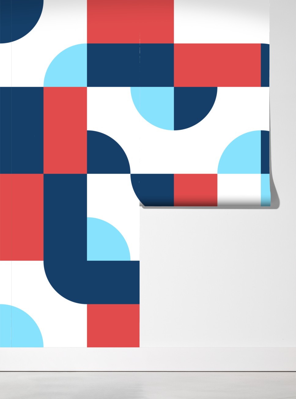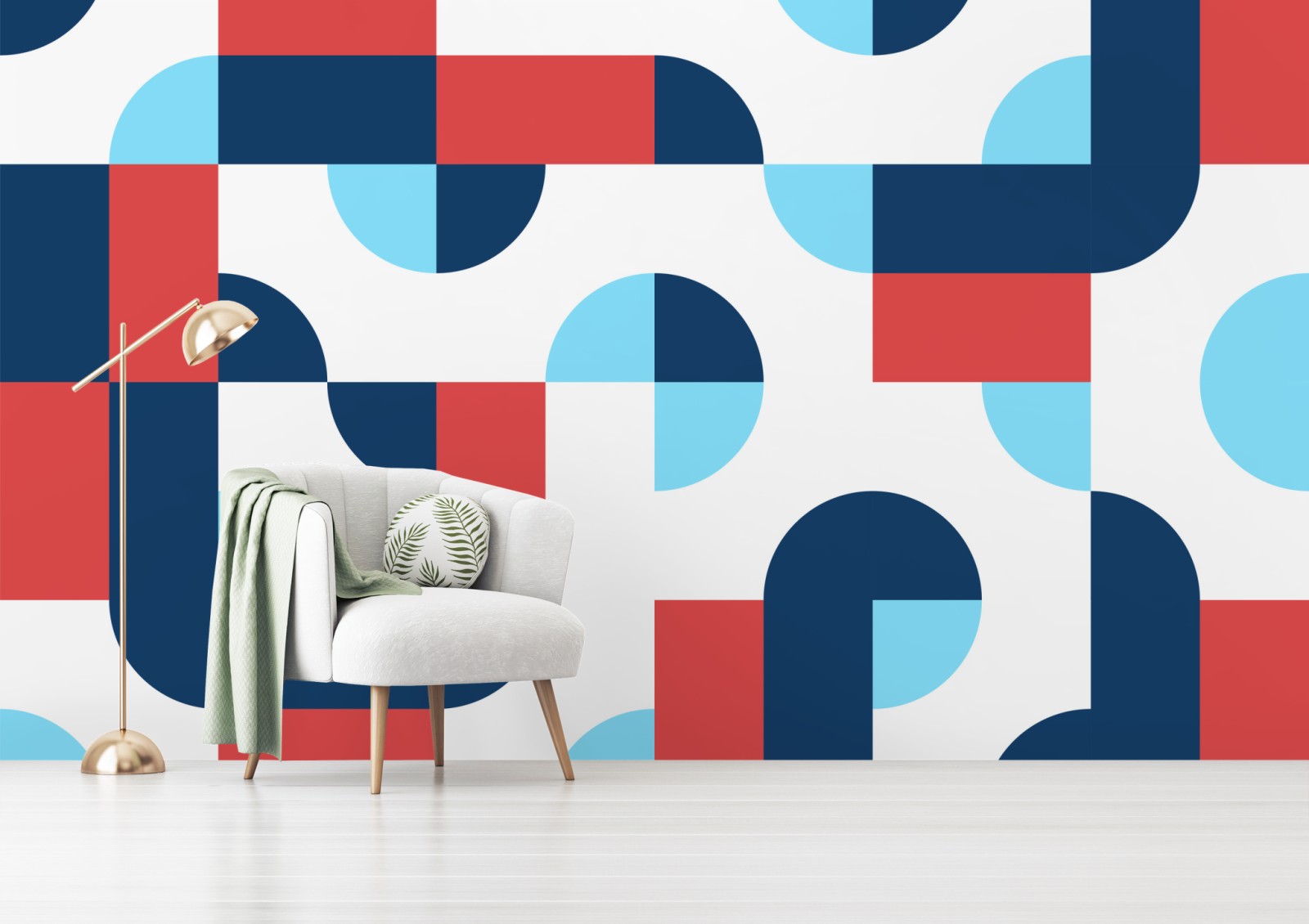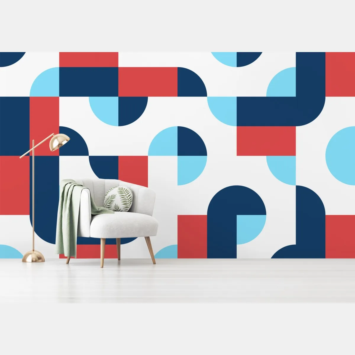 Bringt mutige geometrische Formen und lebhafte dunkelblaue, korallenrote und hellblaue Töne in den Raum und schafft so einen modernen Blickfang.