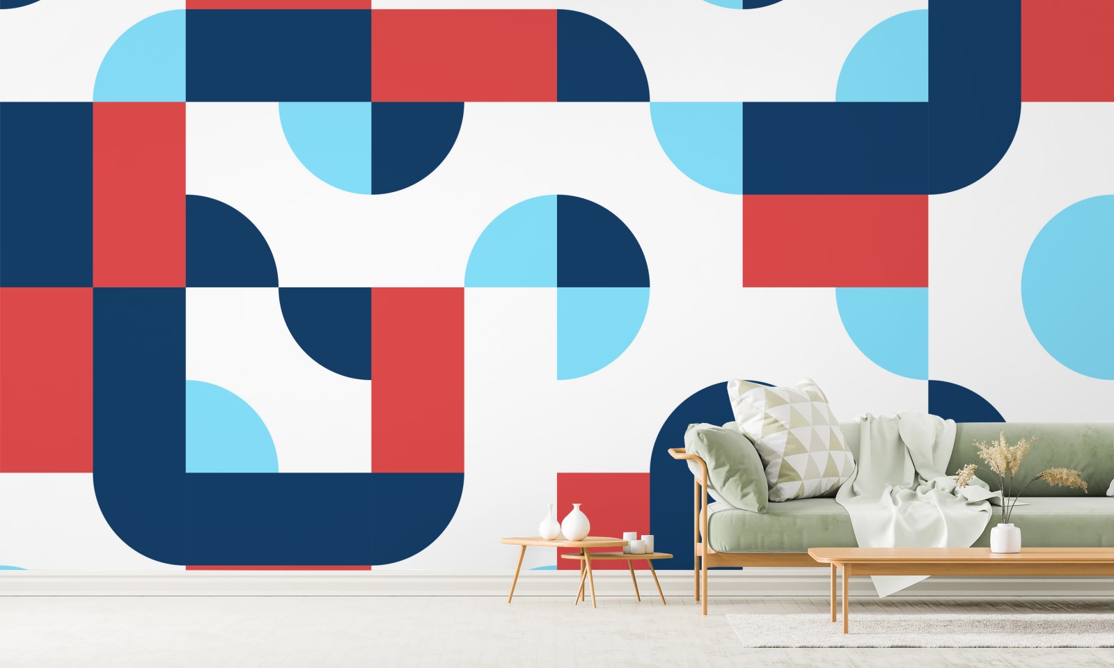 Fototapete Mutiges geometrisches muster in dunkelblau und koralle