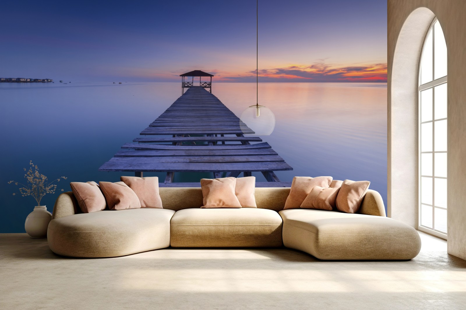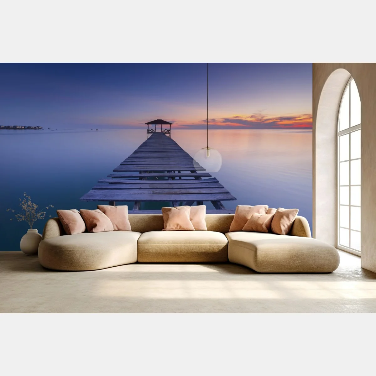 Fototapete Ruhiger steg bei sonnenuntergang