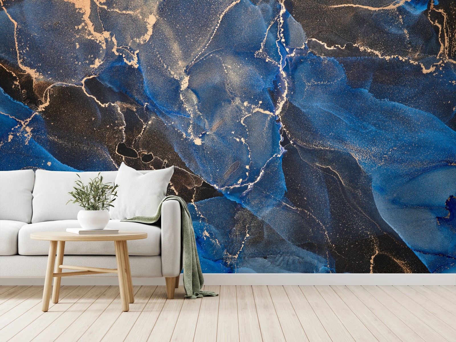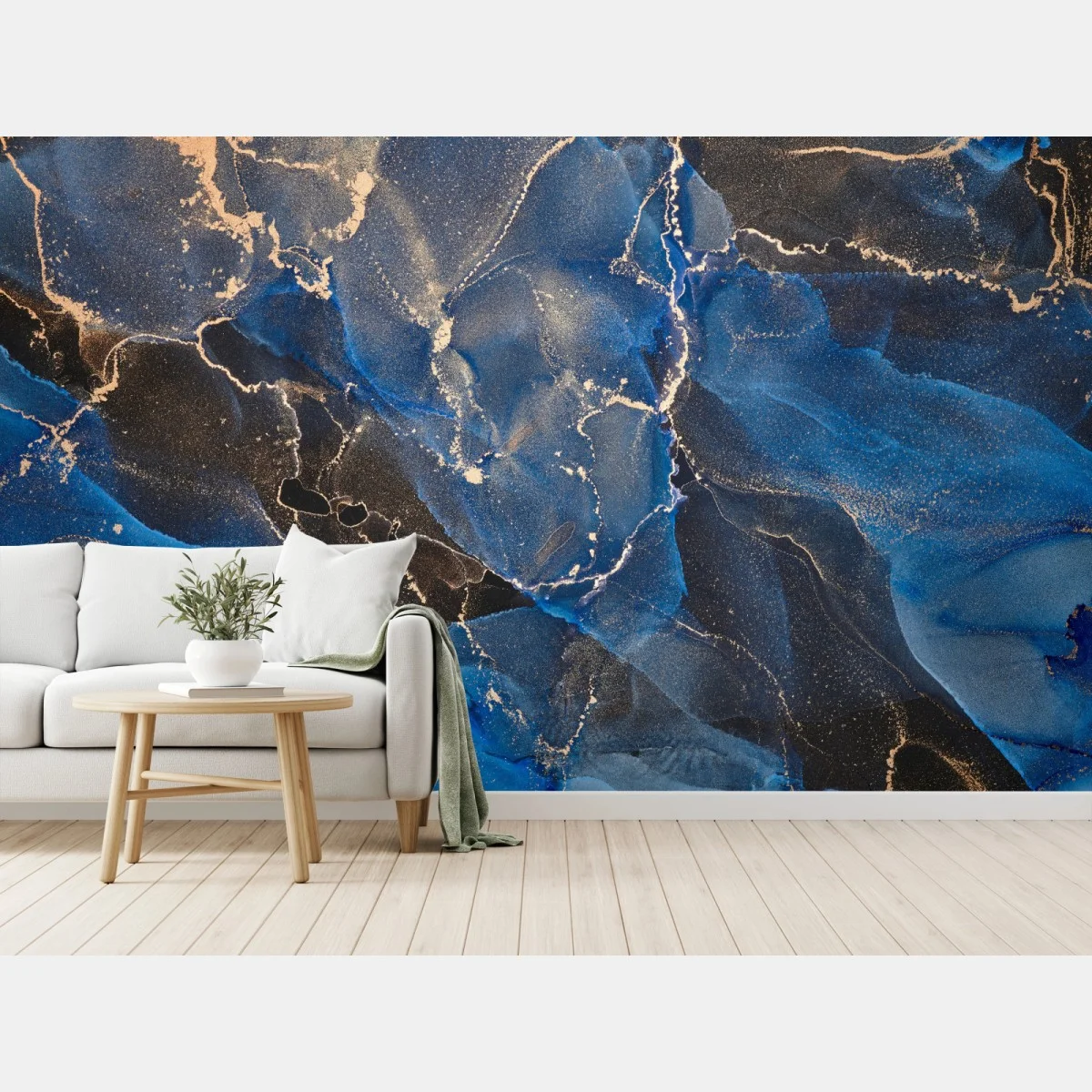 Bringen Sie mit diesem traumhaften blauen und goldenen abstraktbild einen Hauch von Luxus und Ruhe in Ihr Zuhause, ideal für moderne Einrichtungen.MehrWeniger