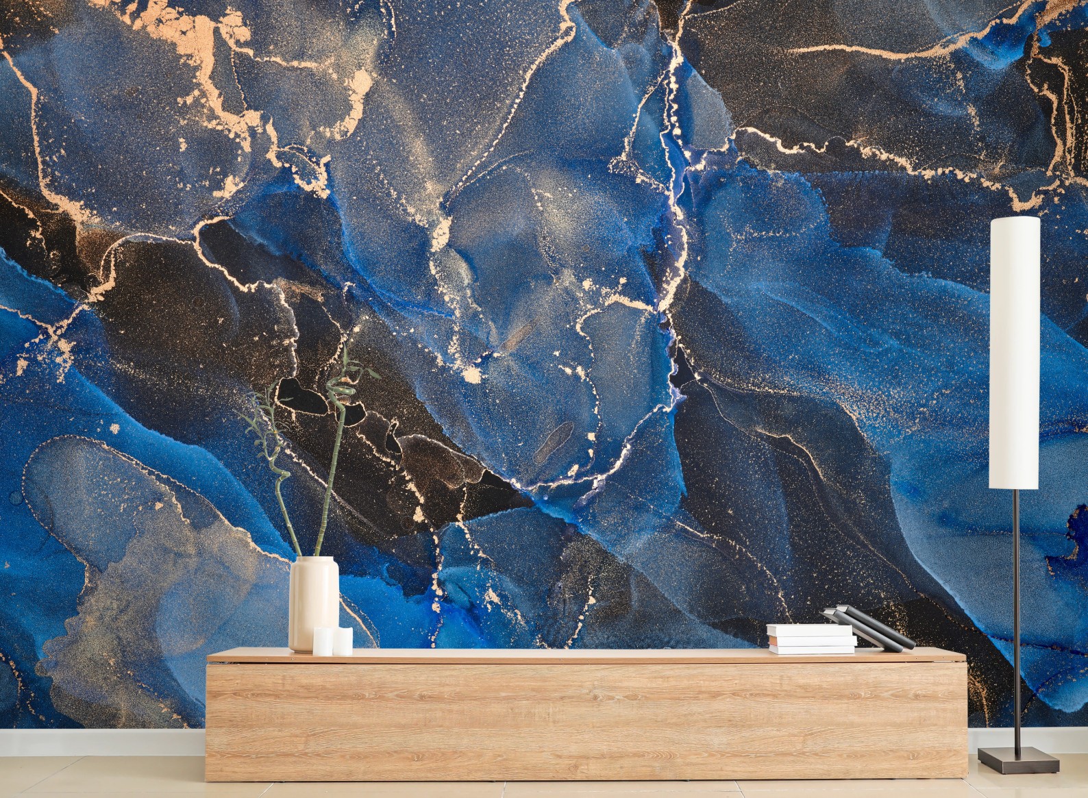 Fototapete Luxuriöse blaue und goldene abstrakte wellen