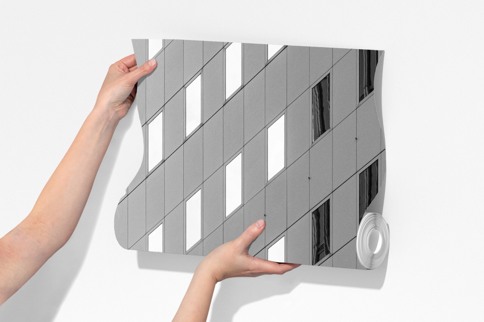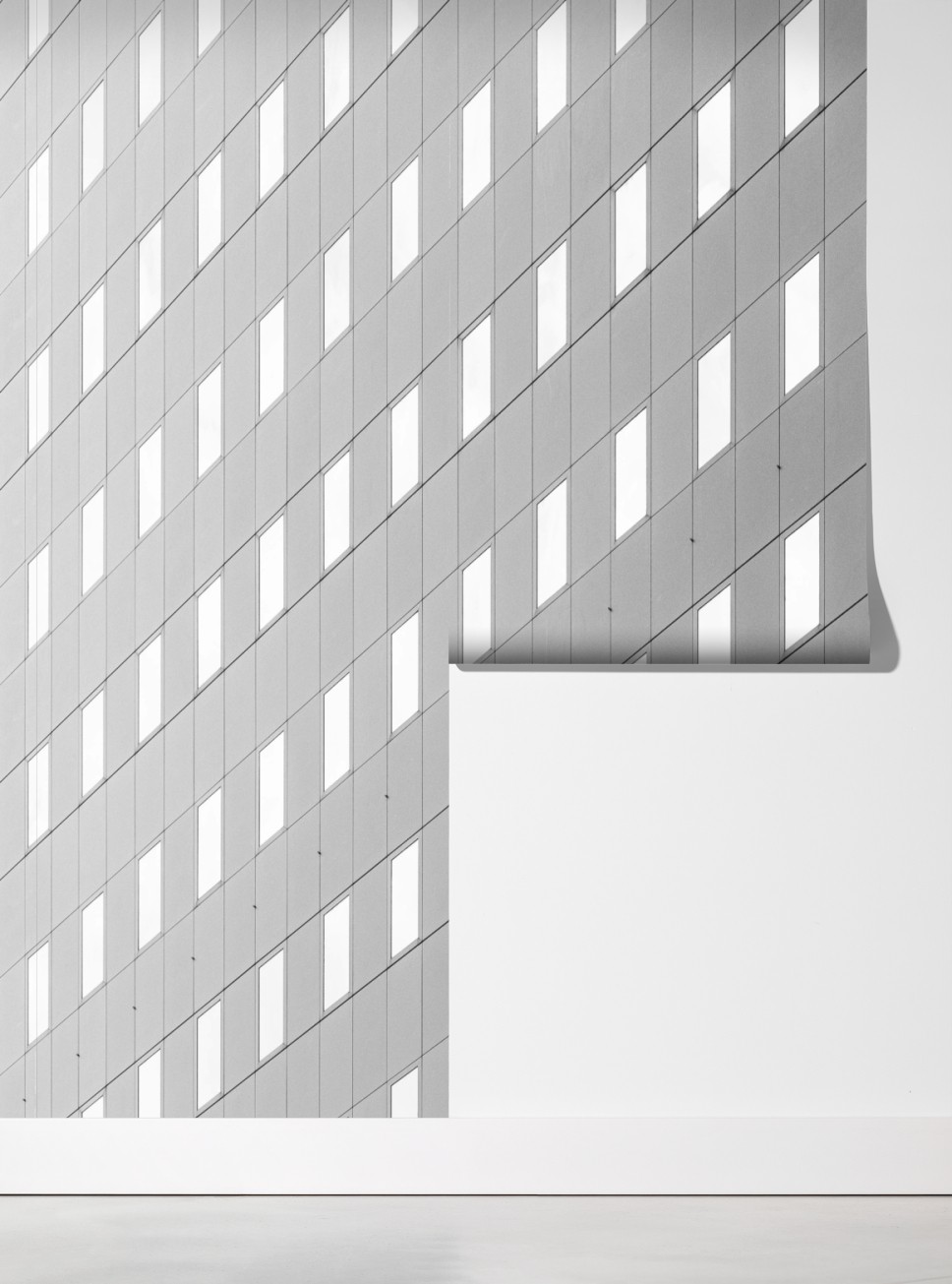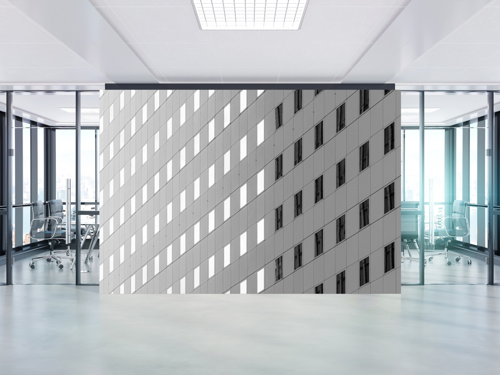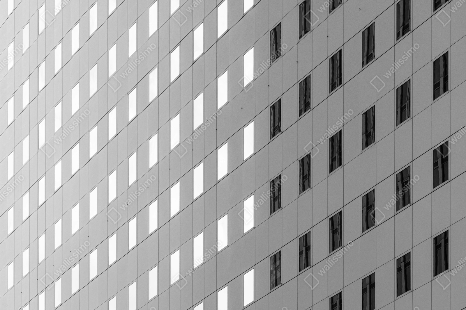 Klar definierte geometrische Linien und wiederkehrende Fenster schaffen eine ruhige, minimalistische Komposition, ideal für moderne Innenräume.