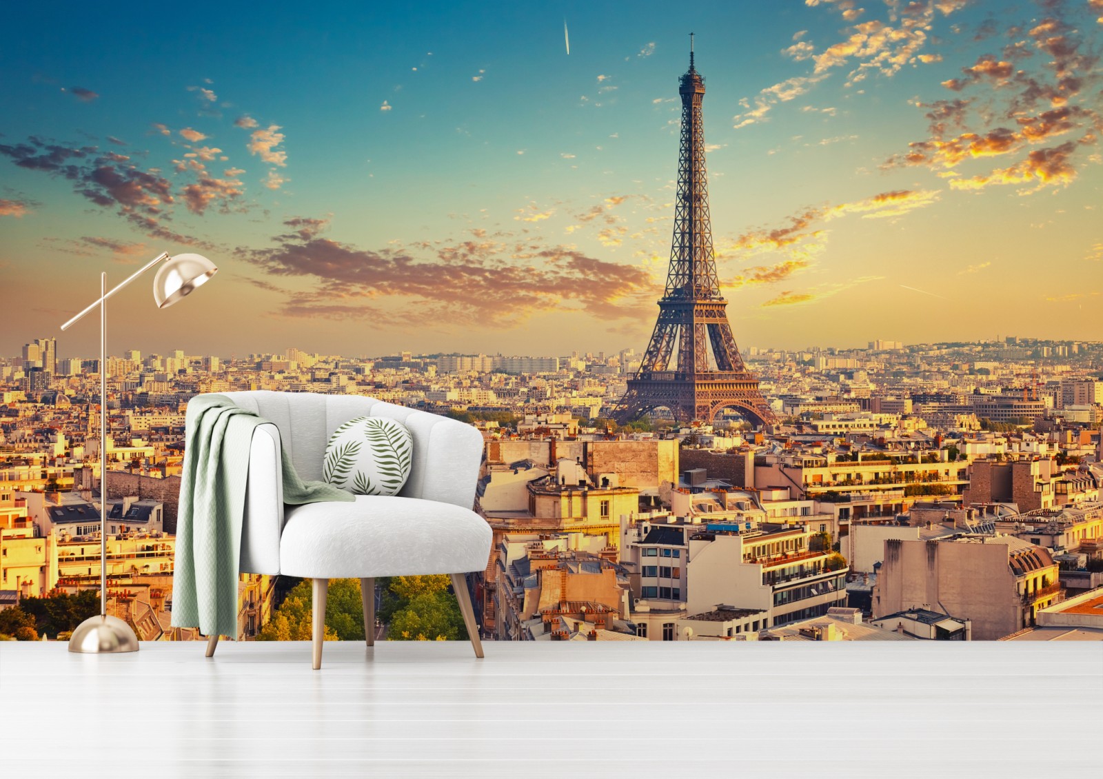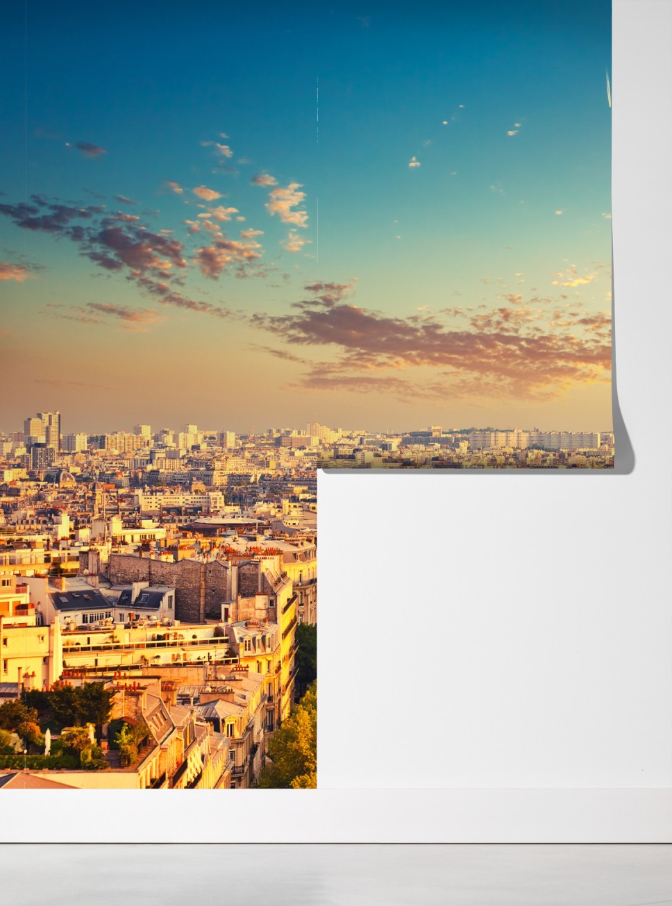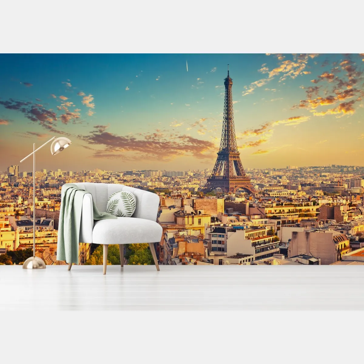 Erleben Sie den romantischen Charme von Paris bei Sonnenuntergang mit dieser lebendigen Stadtansicht, die jedem Raum Wärme verleiht.