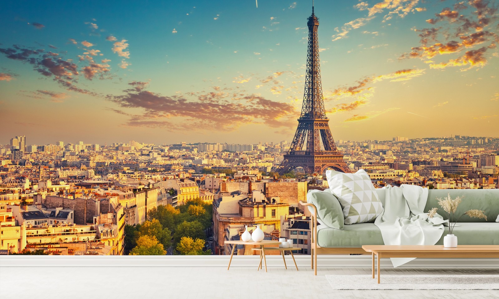 Fototapete Sonnenuntergang über Paris skyline mit eiffelturm
