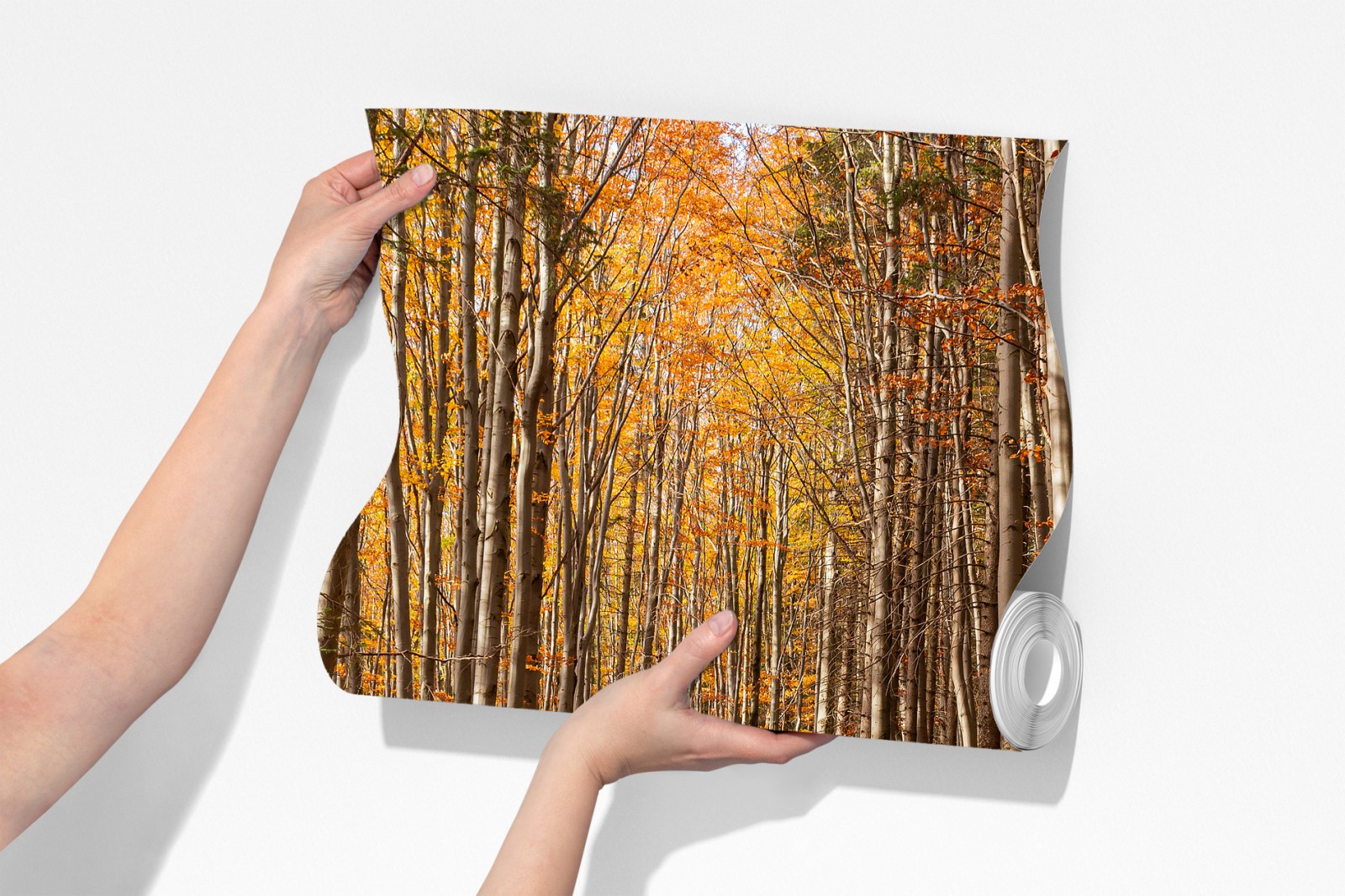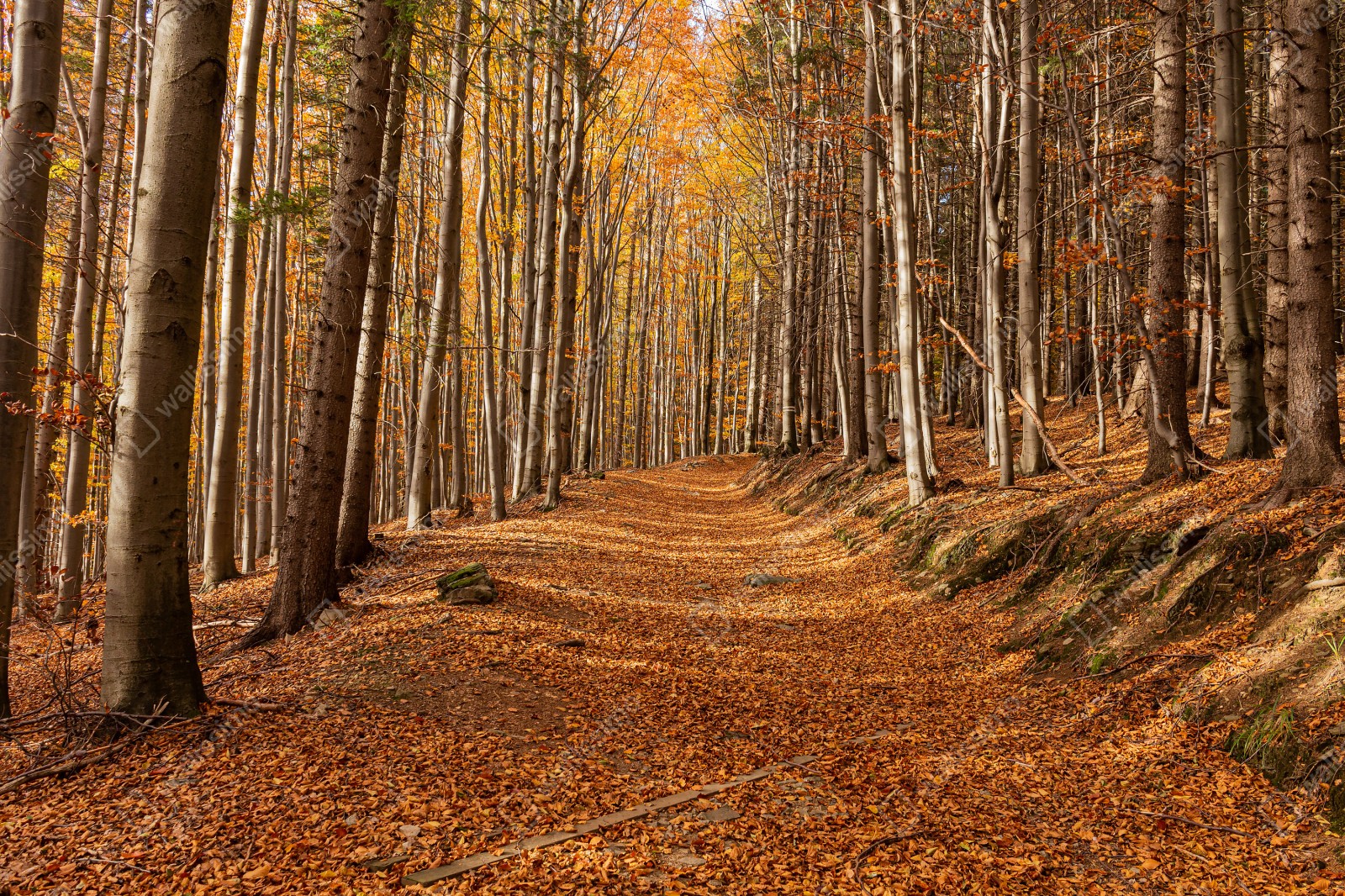 Fototapete herbstlicher waldweg mit goldenen blättern